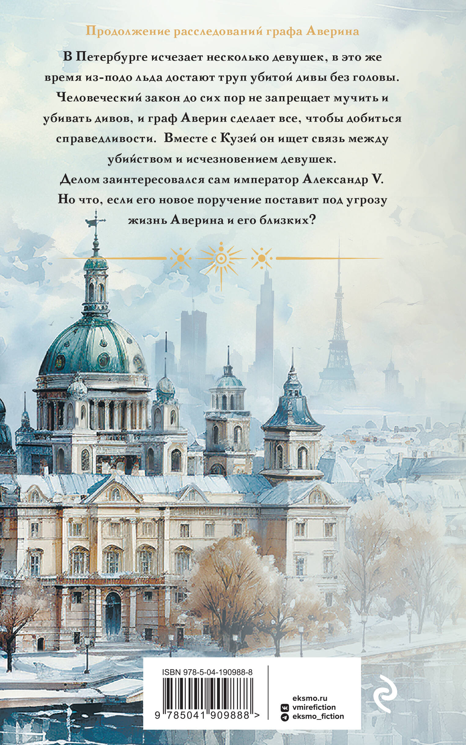 В Петербурге исчезает несколько девушек, в это же время из-подо льда достают труп убитой дивы без головы. Человеческий закон до сих пор не запрещает мучить и убивать дивов, и граф Аверин сделает все, чтобы добиться справедливости. Вместе с Кузей он ищет связь между убийством и исчезновением девушек. Делом заинтересовался сам император Александр V. Но что, если его новое поручение поставит под угрозу жизнь Аверина и его близких?