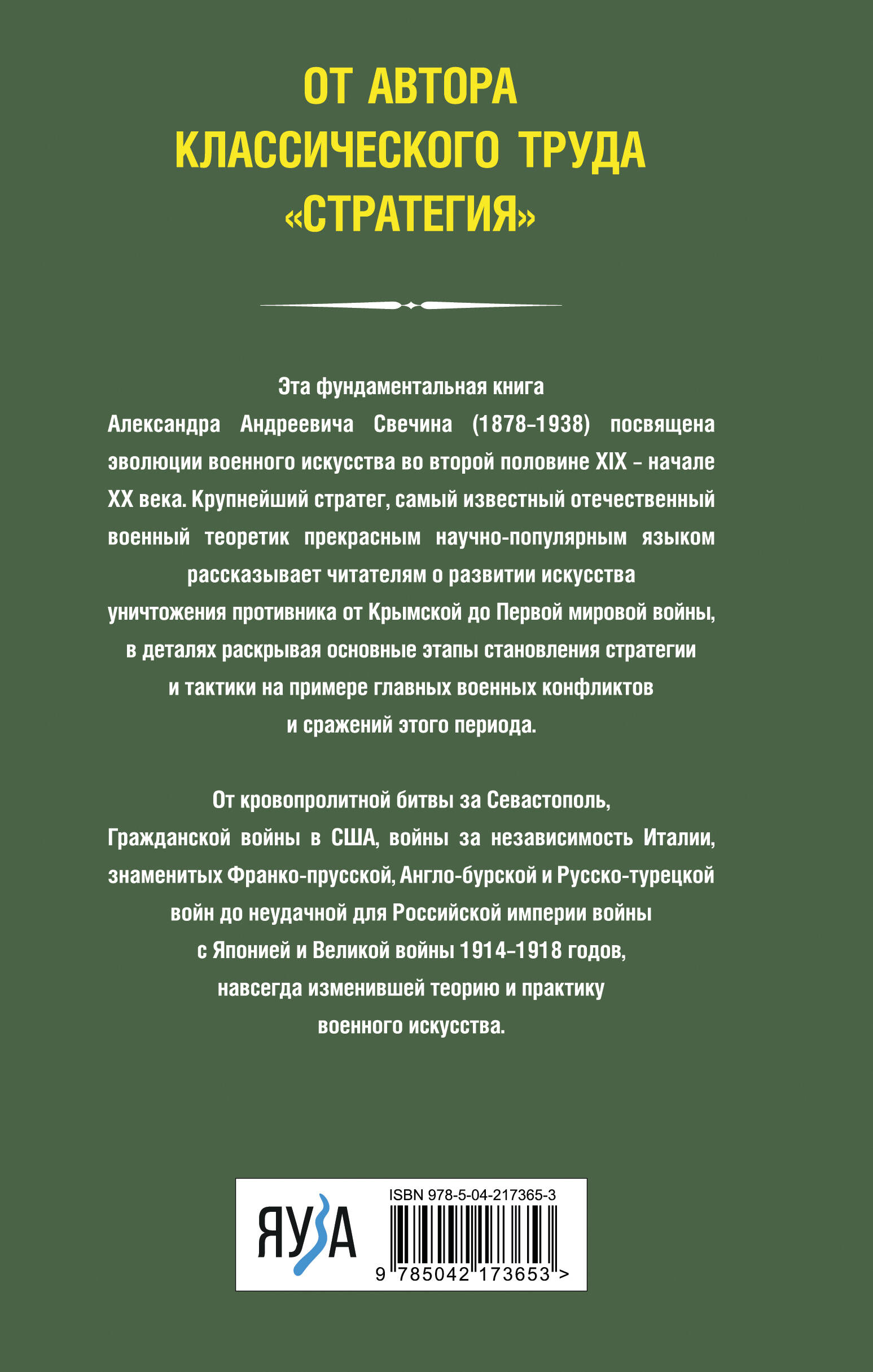 ОТ АВТОРА КЛАССИЧЕСКОГО ТРУДА "СТРАТЕГИЯ". Эта фундаментальная книга Александра Андреевича Свечина (1878–1938) посвящена эволюции военного искусства во второй половине XIX – начале XX века. Крупнейший стратег, самый известный отечественный военный теоретик, прекрасным научно-популярным языком рассказывает читателям о развитии искусства уничтожения противника от Крымской до Первой Мировой войны, в деталях раскрывая основные этапы становления стратегии и тактики на примере главных военных конфликтов и сражений этого периода.