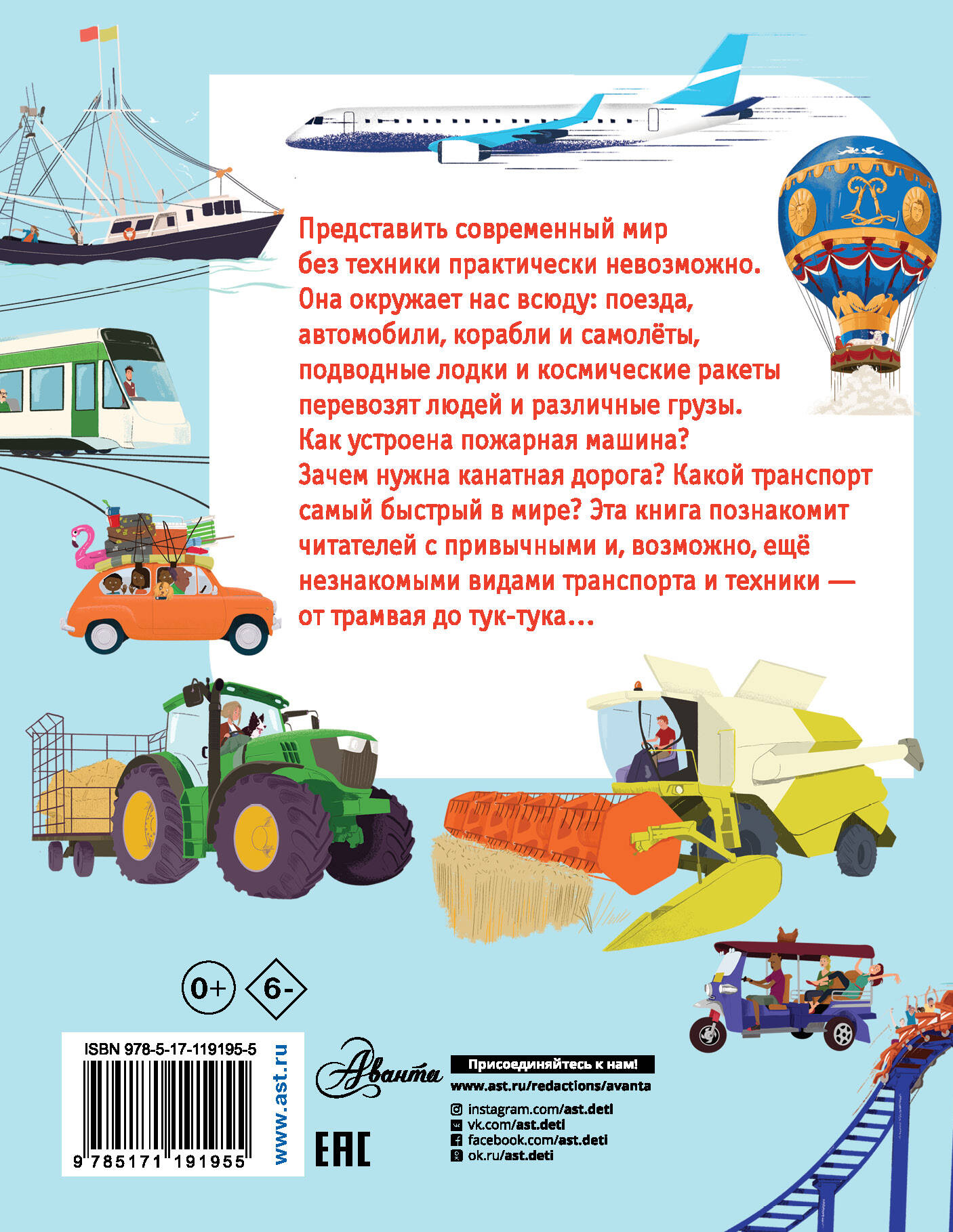Представить современный мир без техники практически невозможно. Она окружает нас всюду: поезда, автомобили, корабли и самолёты, подводные лодки и космические ракеты перевозят людей и различные грузы. Как устроена пожарная машина? Зачем нужна канатная дорога? Какой транспорт самый быстрый в мире? Эта книга познакомит читателей с привычными и, возможно, ещё незнакомыми видами транспорта и техники - от трамвая до тук-тука…