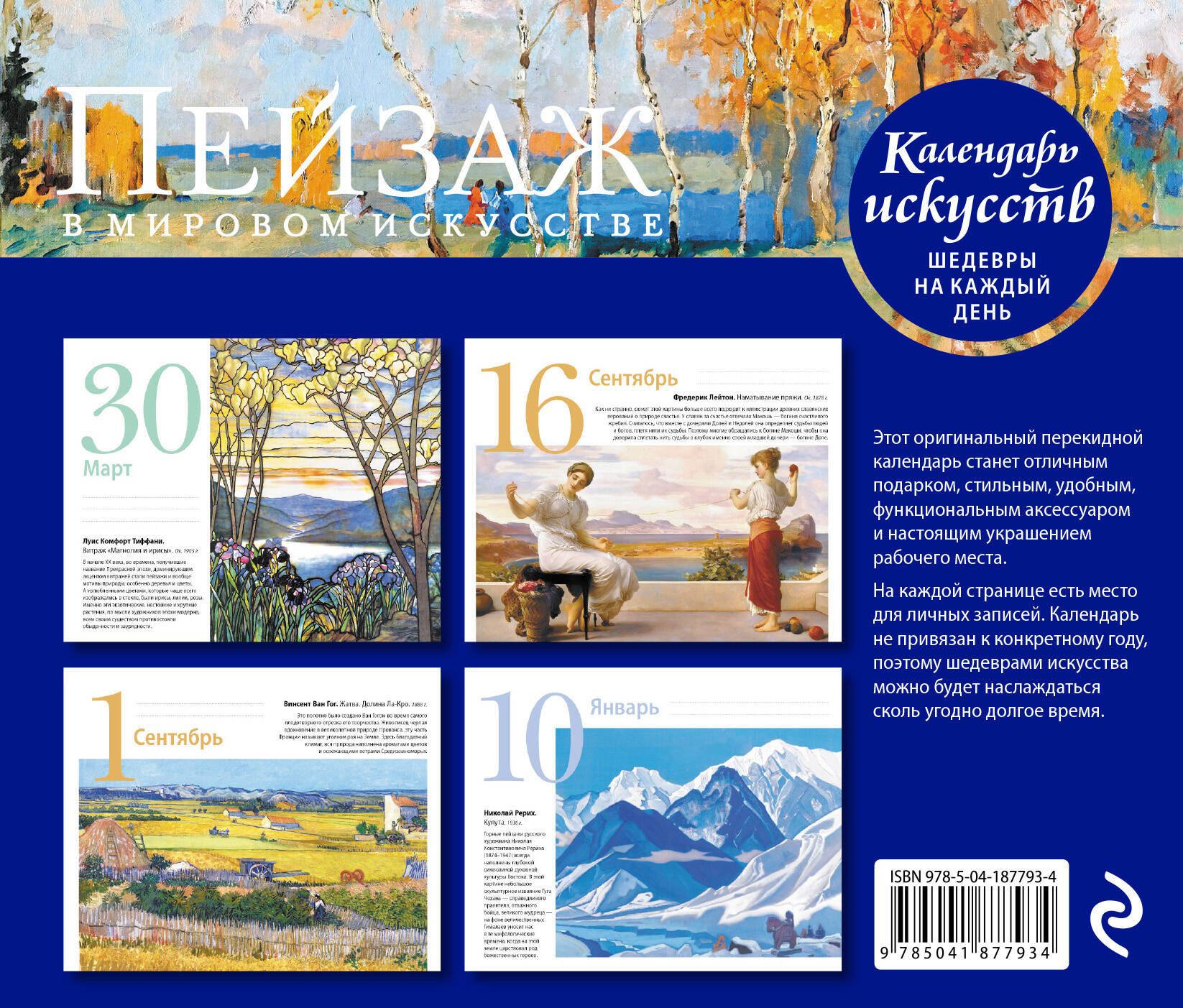 Вечный календарь «Пейзаж в мировом искусстве» из серии «Шедевры на каждый день» — это креативная инновация во Вселенной искусства. Календарь объединяет в себе достоинства художественного альбома, картинной галереи и путеводителя по изобразительному искусству.