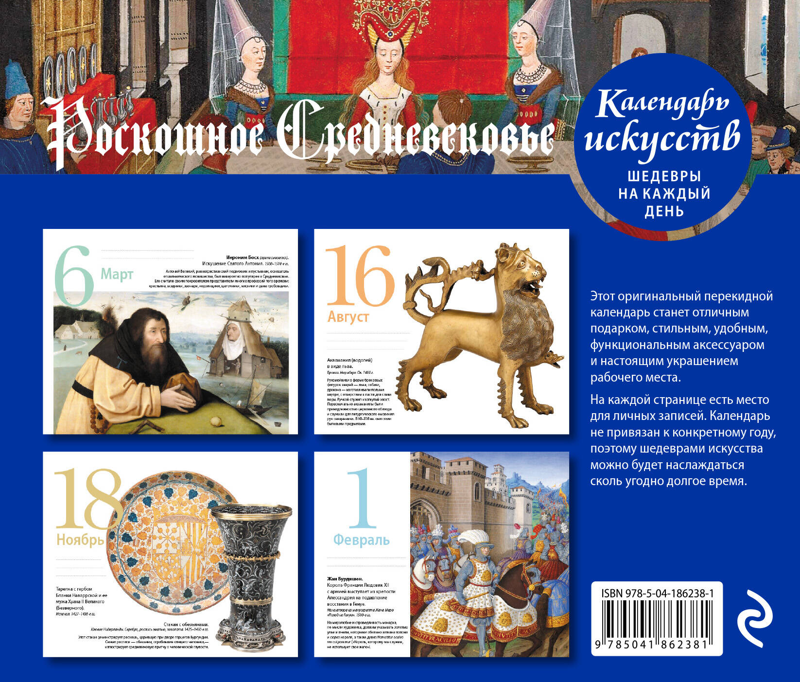 Вечный календарь «Роскошное Средневековье» из серии «Шедевры на каждый день» — это креативная инновация во Вселенной искусства. Календарь объединяет в себе достоинства художественного альбома, картинной галереи и путеводителя по изобразительному искусству.