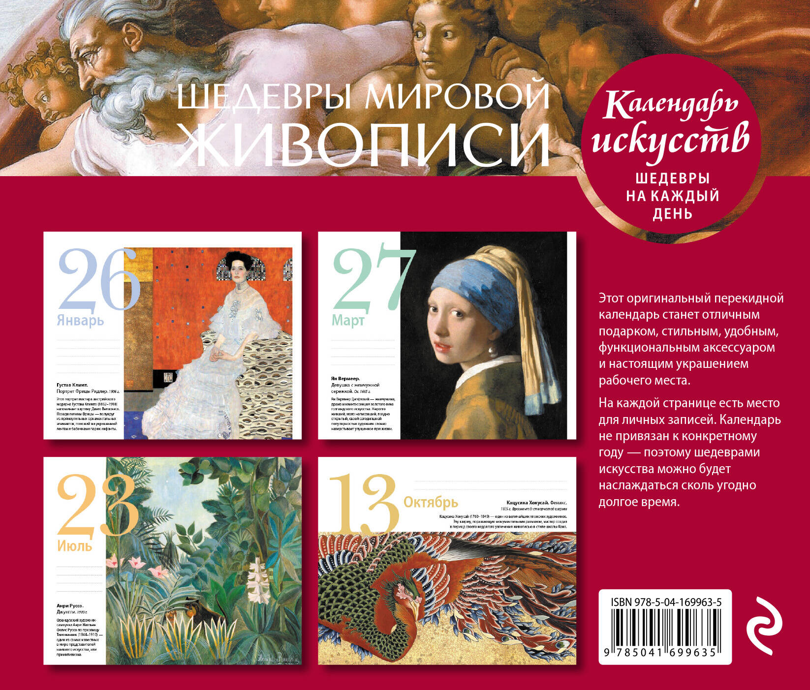 Вечный календарь «Шедевры мировой живописи» — это креативная инновация во Вселенной искусства. Календарь объединяет в себе достоинства художественного альбома, картинной галереи и путеводителя по изобразительному искусству.