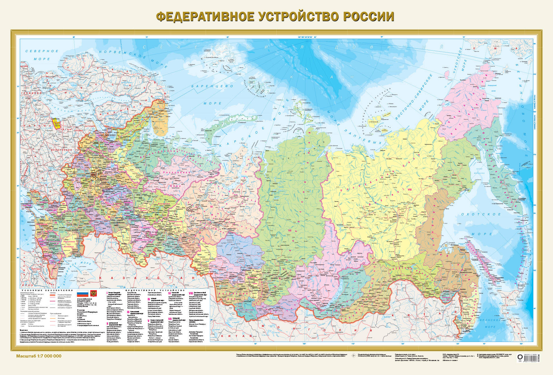 Карта Мира Политическая Федеративное устройство России 1:32/1:7 Настенная А0