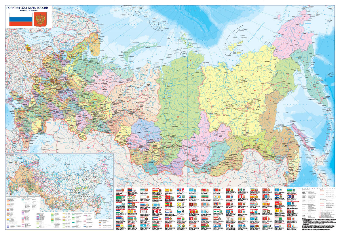 Карта России Политическая Физическая(бол) в новых границах