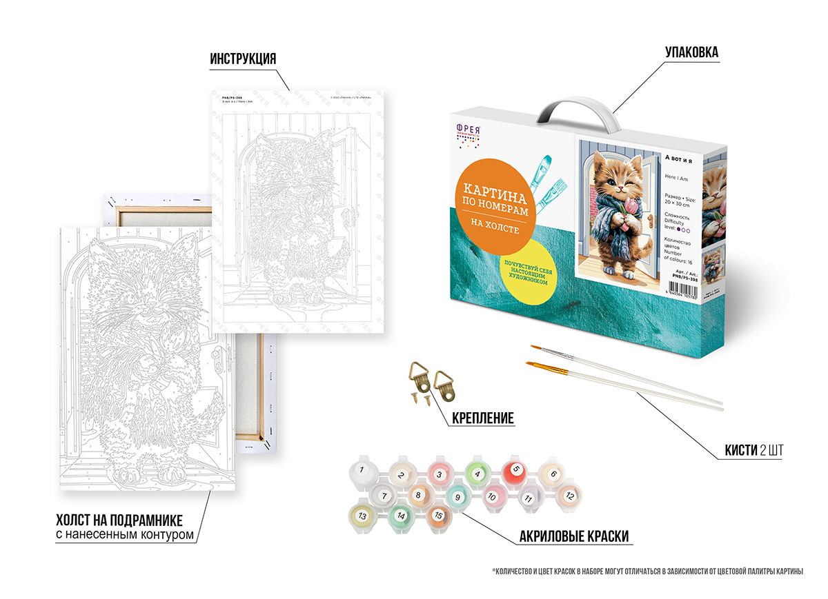 • акриловые краски в пронумерованных баночках и вакуумной упаковке,
