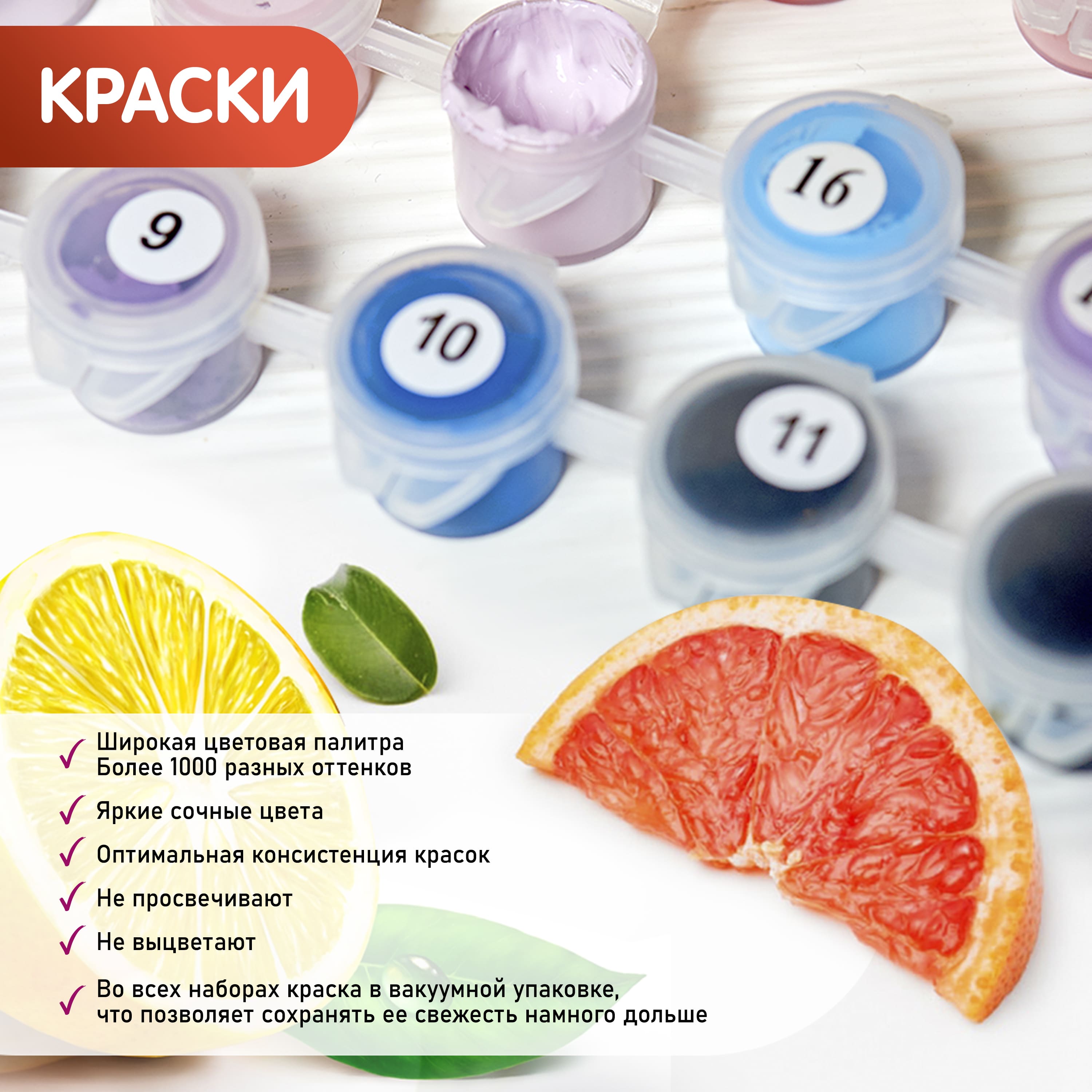 Набор включает все необходимые материалы для полноценного творческого процесса - холст на подрамнике, красочные краски и кисти. Уровень сложности 3 из 5 подходит как для начинающих, так и для тех, кто хочет немного прокачать свои навыки. Благодаря минимальному количеству цветов (22 шт. ), работа проста и не требует много времени, а качественный холст дает долговечность готовой картины.