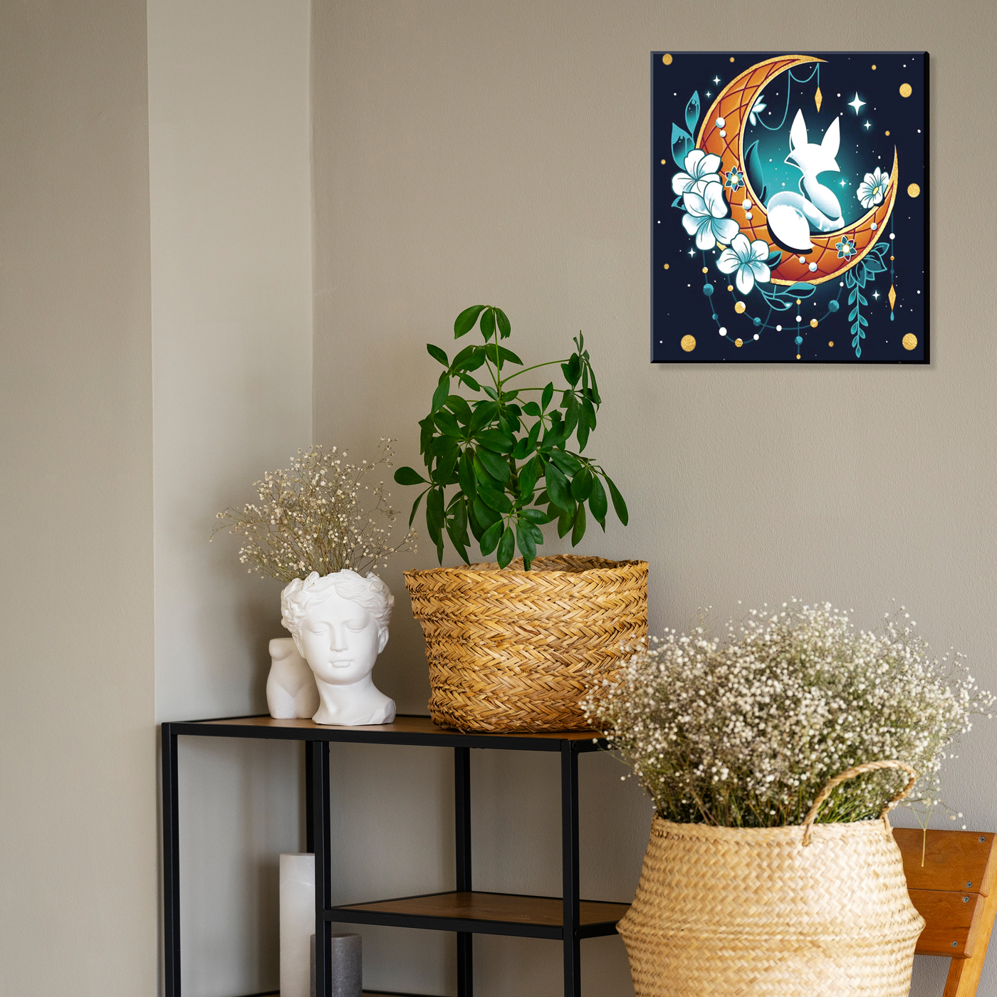Картина по номерам 30*30 Лиса на месяце с поталью