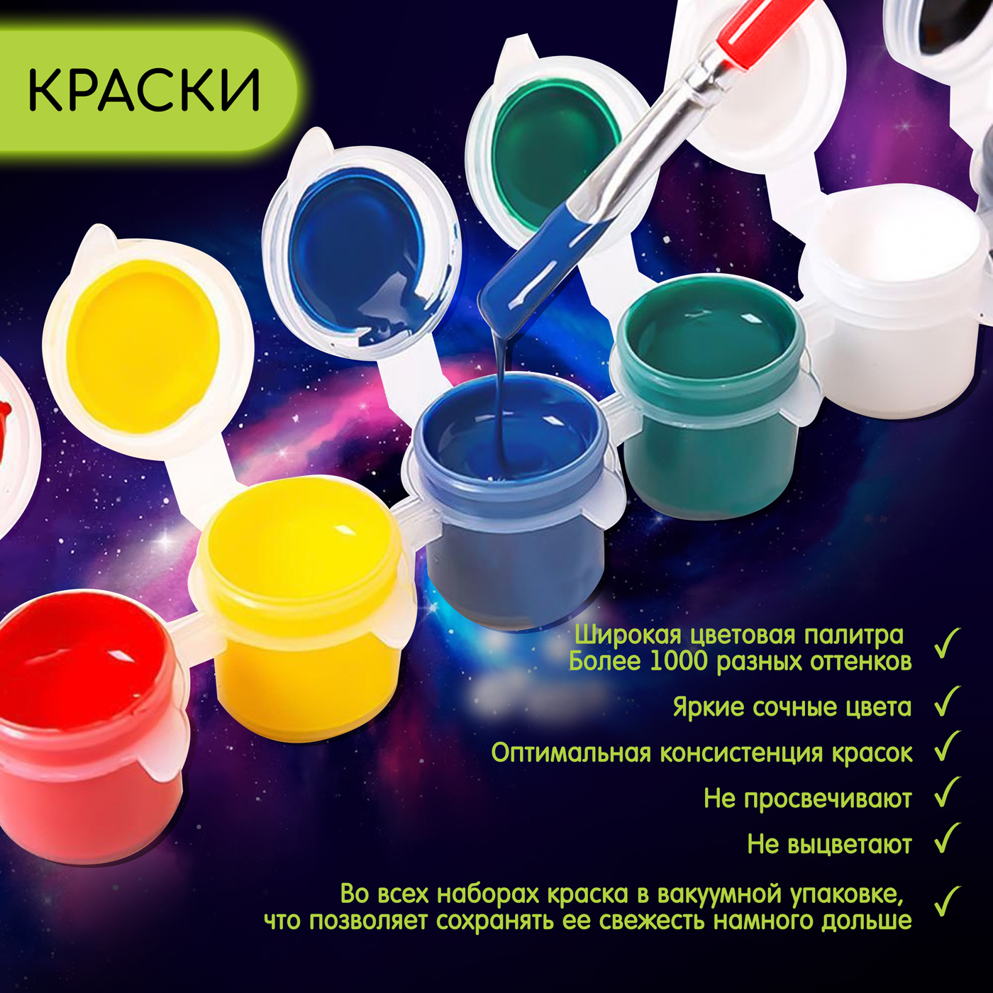 Профессиональные акриловые краски образуют ровный, яркий слой, который не тускнеет со временем. Рисование по номерам развивает мелкую моторику рук, творческие навыки и художественное воображение.