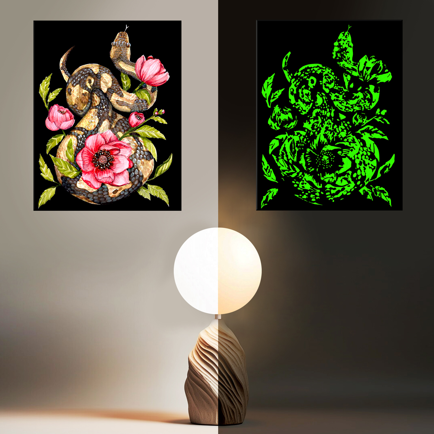 Картина по номерам 30х40 Змея в пионах – это набор для творчества, с помощью которого и взрослый, и ребенок сможет, даже не обладая специальными навыками и художественными способностями нарисовать картину по номерам. Черный холст – это холст, который нужно частично закрашивать, так как он уже окрашен в черное. Смотрится такой холст стильно необычно. краски на нем выглядят ярче и контрастнее за счет его матовой текстуры. В этом есть еще один плюс – так как картину не нужно закрашивать полностью, даже на картину с большей детализацией потребуется меньше времени на раскрашивание. Вы быстрее закончите свой шедевр и сможете любоваться им.Поскольку холст черный он отражает меньше света и свет не бьет ярко в глаза, отражаясь от холста, как это происходит в случае с белым холстом. При раскрашивании черного холста глаза устают меньше.Профессиональные акриловые краски образуют ровный, яркий слой, который не тускнеет со временем. Рисование по номерам развивает мелкую моторику рук, творческие навыки и художественное воображение.Контрольную схему вы можете посмотреть по ссылке контрольная схема.Количество цветов: 23Уровень сложности: 3 (средний)Состав набора: черный холст из натурального хлопка на деревянном подрамнике с нанесенной схемой рисунка, нейлоновые кисти разного размера, 3шт., профессиональные акриловые краски, устойчивые к выцветанию, светящаяся краска