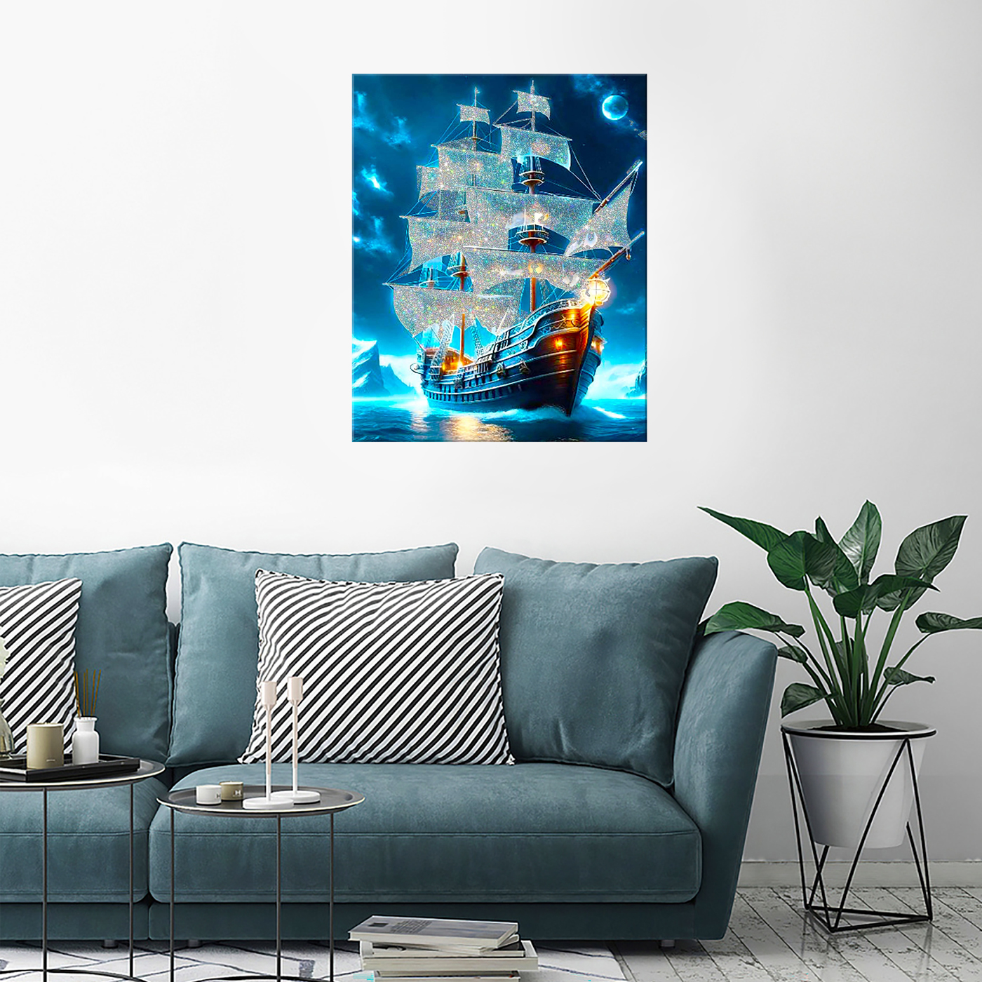 Картина по номерам с кристаллами 40х50 Одинокий парусник – это набор для творчества с помощью которого, используя краски и кисть, можно нарисовать потрясающую картину, даже не обладая художественными навыками.