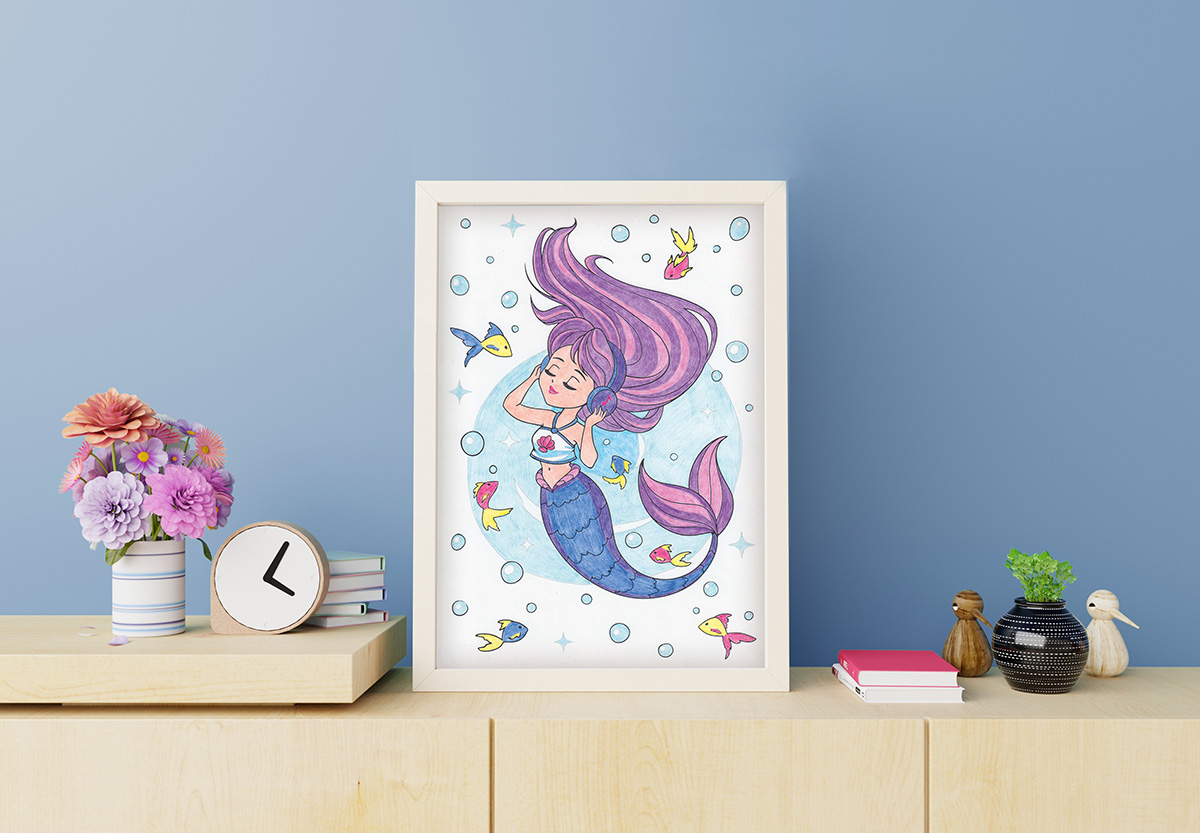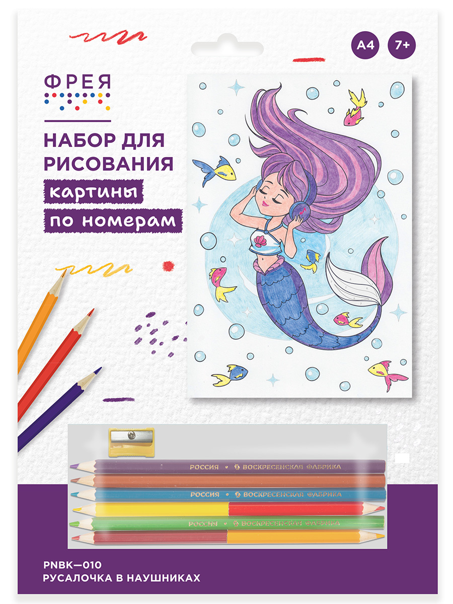 Картина по номерам карандашами Русалочка в наушниках