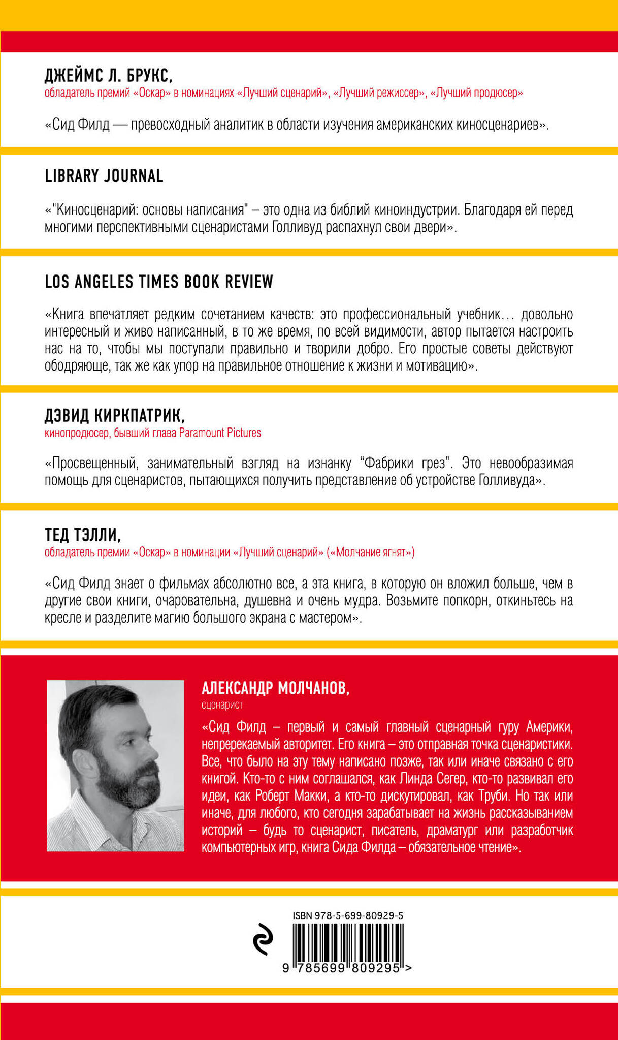 «Замечательная помощь для сценаристов. Я всегда советую молодым сценаристам взять эту книгу и прочитать от корки до корки, после чего либо принять ее полностью, либо взбунтоваться против нее. В любом случае эта книга точно направит мысли в нужное русло». — Дэвид Кепп, обладатель различных кинопремий в номинации «Лучший сценарий», режиссер фильмов «Человек-паук», «Тайное окно», «Война миров»