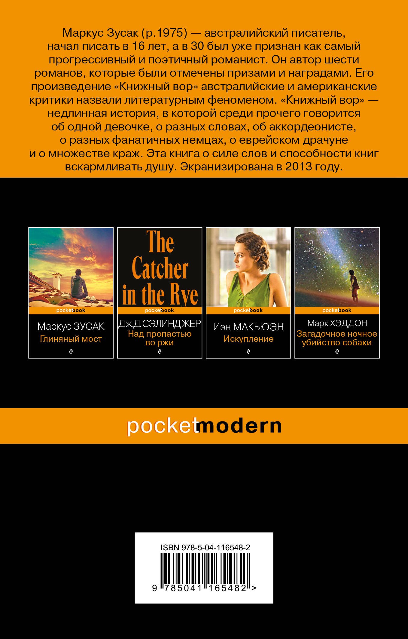 Январь 1939 года. Германия. Страна, затаившая дыхание. Никогда еще у смерти не было столько работы. А будет еще больше. Мать везет девятилетнюю Лизель Мемингер и ее младшего брата к приемным родителям под Мюнхен, потому что их отца больше нет — его унесло дыханием чужого и странного слова «коммунист», и в глазах матери девочка видит страх перед такой же судьбой. В дороге смерть навещает мальчика и впервые замечает Лизель. Так девочка оказывается на Химмель-штрассе — Небесной улице. Кто бы ни придумал это название, у него имелось здоровое чувство юмора. Не то чтобы там была сущая преисподняя. Нет. Но и никак не рай. «Книжный вор» — недлинная история, в которой, среди прочего, говорится: об одной девочке; о разных словах; об аккордеонисте; о разных фанатичных немцах; о еврейском драчуне; и о множестве краж. Это книга о силе слов и способности книг вскармливать душу. Экранизирован в 2013 году.