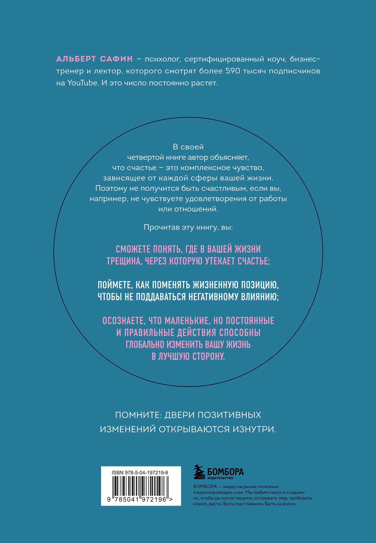 Альберт Сафин — психолог, сертифицированный коуч, бизнес-тренер и лектор, которого смотрят более 590 тысяч подписчиков на YouTube. И это число постоянно растет. В своей четвертой книге он объясняет, что счастье — это комплексное чувство, зависящее от каждой сферы вашей жизни. Поэтому не получится быть счастливым, если вы, например, не чувствуете удовлетворения от работы или отношений.