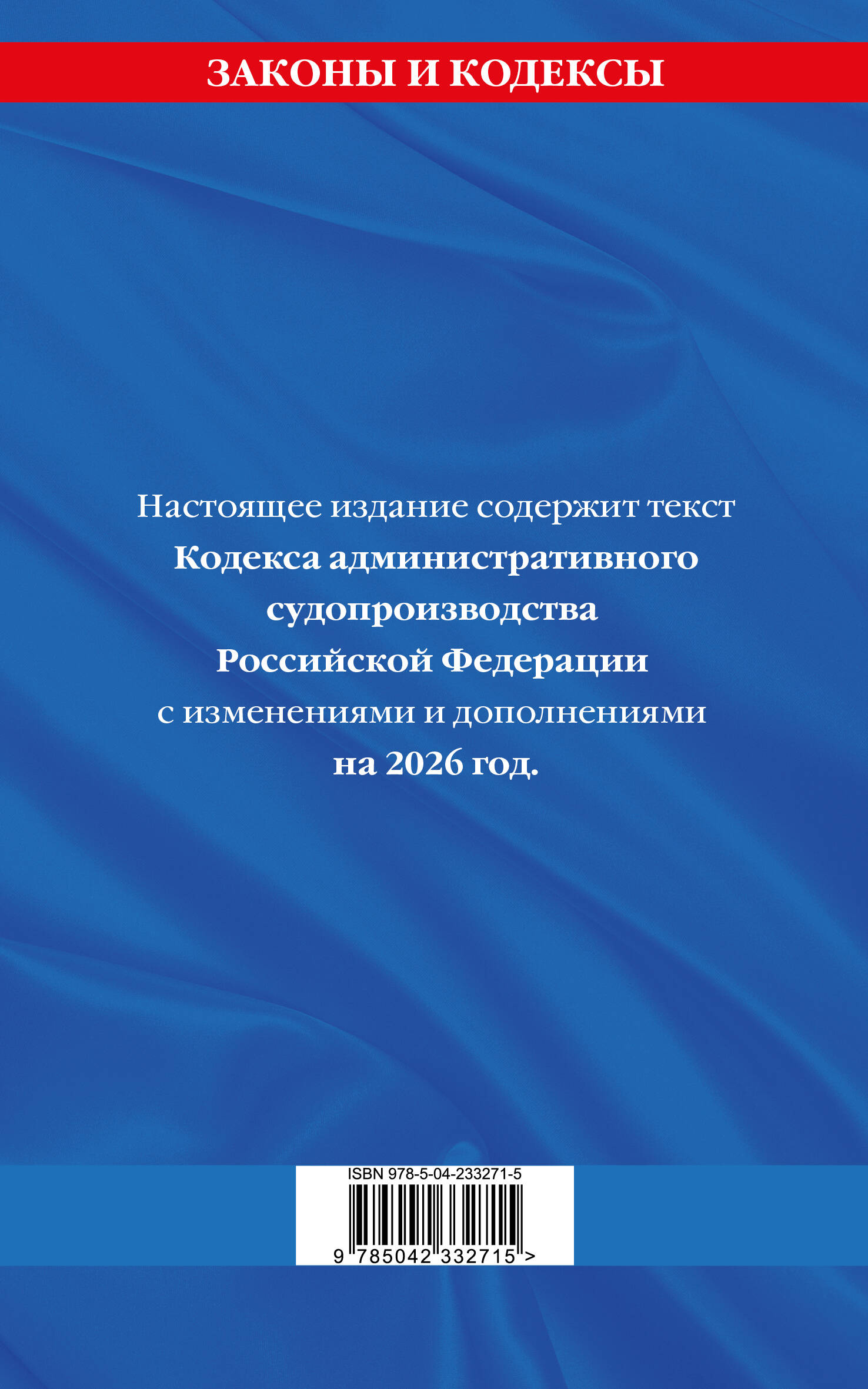 Издание содержит текст Кодекса административного судопроизводства Российской Федерации со всеми изменения и дополнениями на 2026 год.