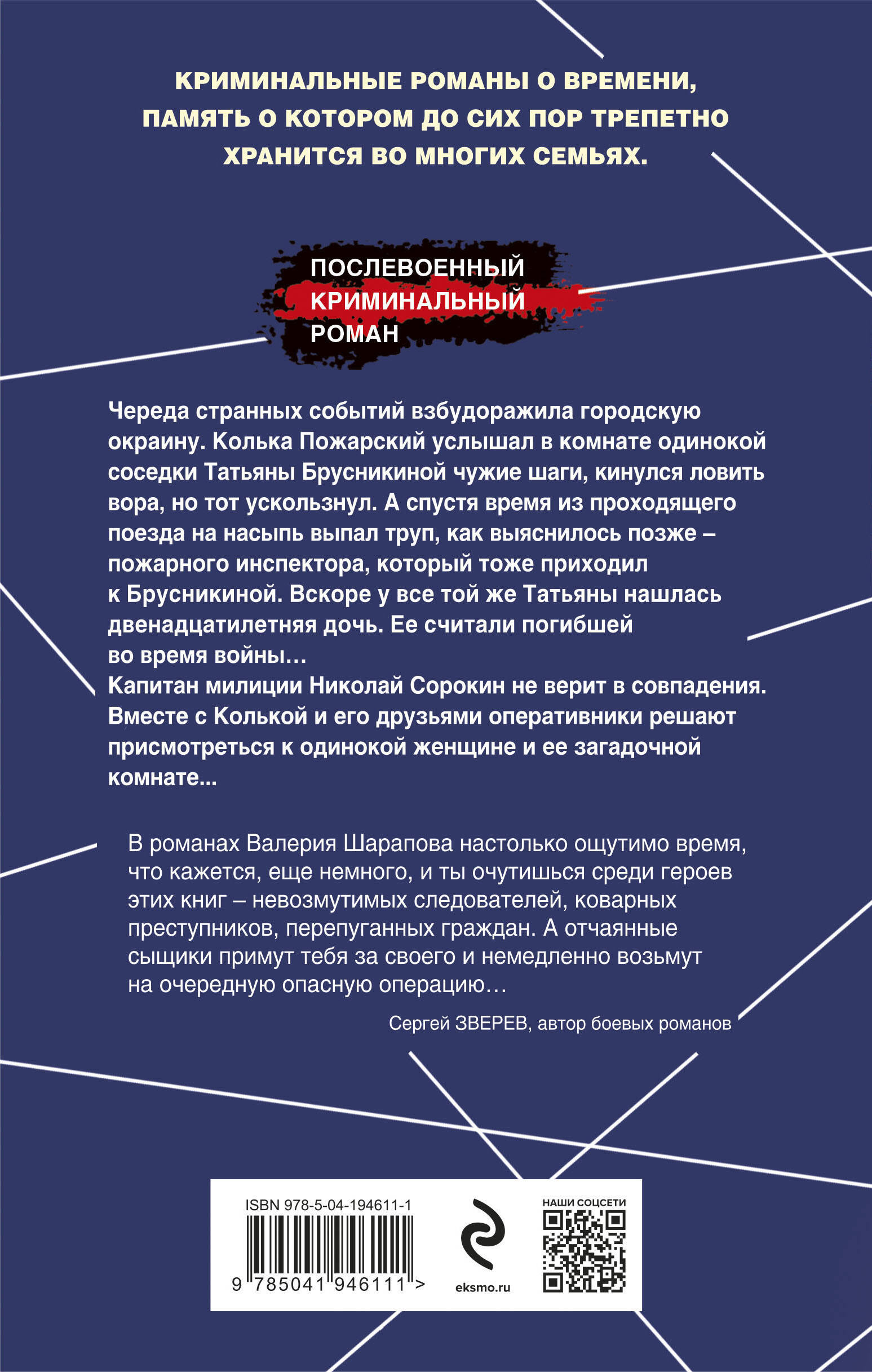 Череда странных событий взбудоражила городскую окраину. Колька Пожарский услышал в комнате одинокой соседки Татьяны Брусникиной чужие шаги, кинулся ловить вора, но тот ускользнул. А спустя время из проходящего поезда на насыпь выпал труп, как выяснилось позже — пожарного инспектора, который тоже приходил к Брусникиной. Вскоре у все той же Татьяны нашлась двенадцатилетняя дочь. Ее считали погибшей во время войны… Капитан милиции Николай Сорокин не верит в совпадения. Вместе с Колькой и его друзьями оперативники решают присмотреться к одинокой женщине и ее загадочной квартире...