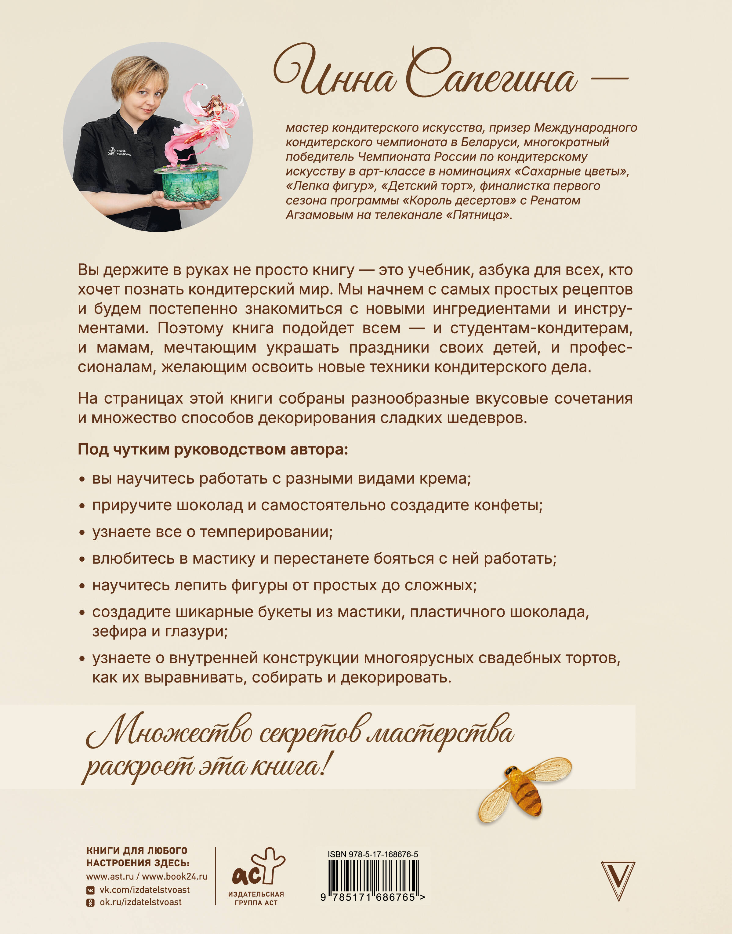 Вы держите в руках не просто книгу - это учебник, азбука для всех, кто хочет познать кондитерский мир. Мы начнём с самых простых рецептов и будем постепенно знакомиться с новыми ингредиентами и инструментами. Поэтому книга подойдёт всем, и студентам-кондитерам, и мамам, мечтающим украшать праздники своих детей, и профессионалам, желающим освоить новые техники кондитерского дела.