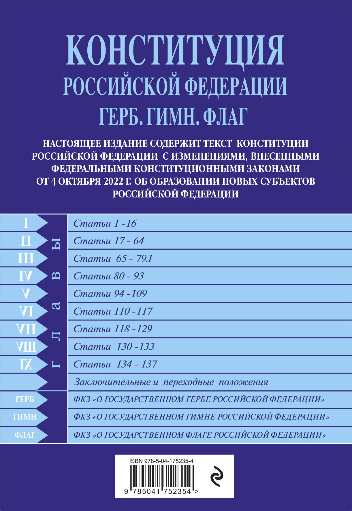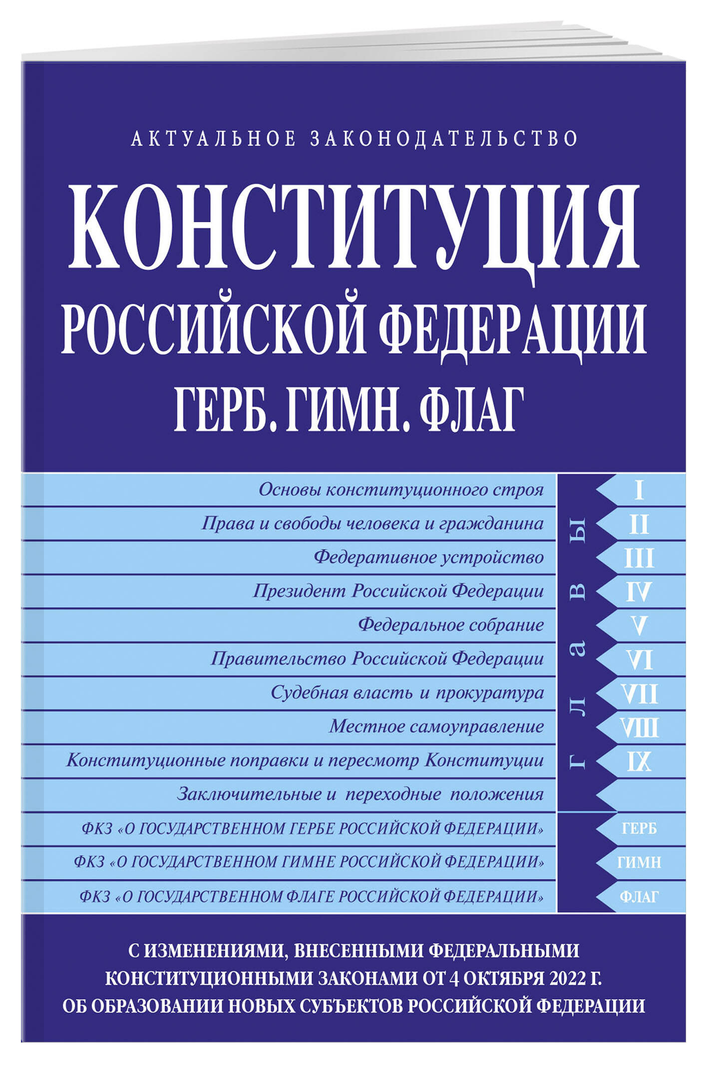 Настоящее издание содержит текст Основного закона страны – Конституции Российской Федерации с изменениями, одобренными на Общероссийском голосовании 1 июля 2020 г, а также тексты федеральных конституционных законов о Государственном гимне, Государственном флаге и Государственном гербе Российской Федерации.