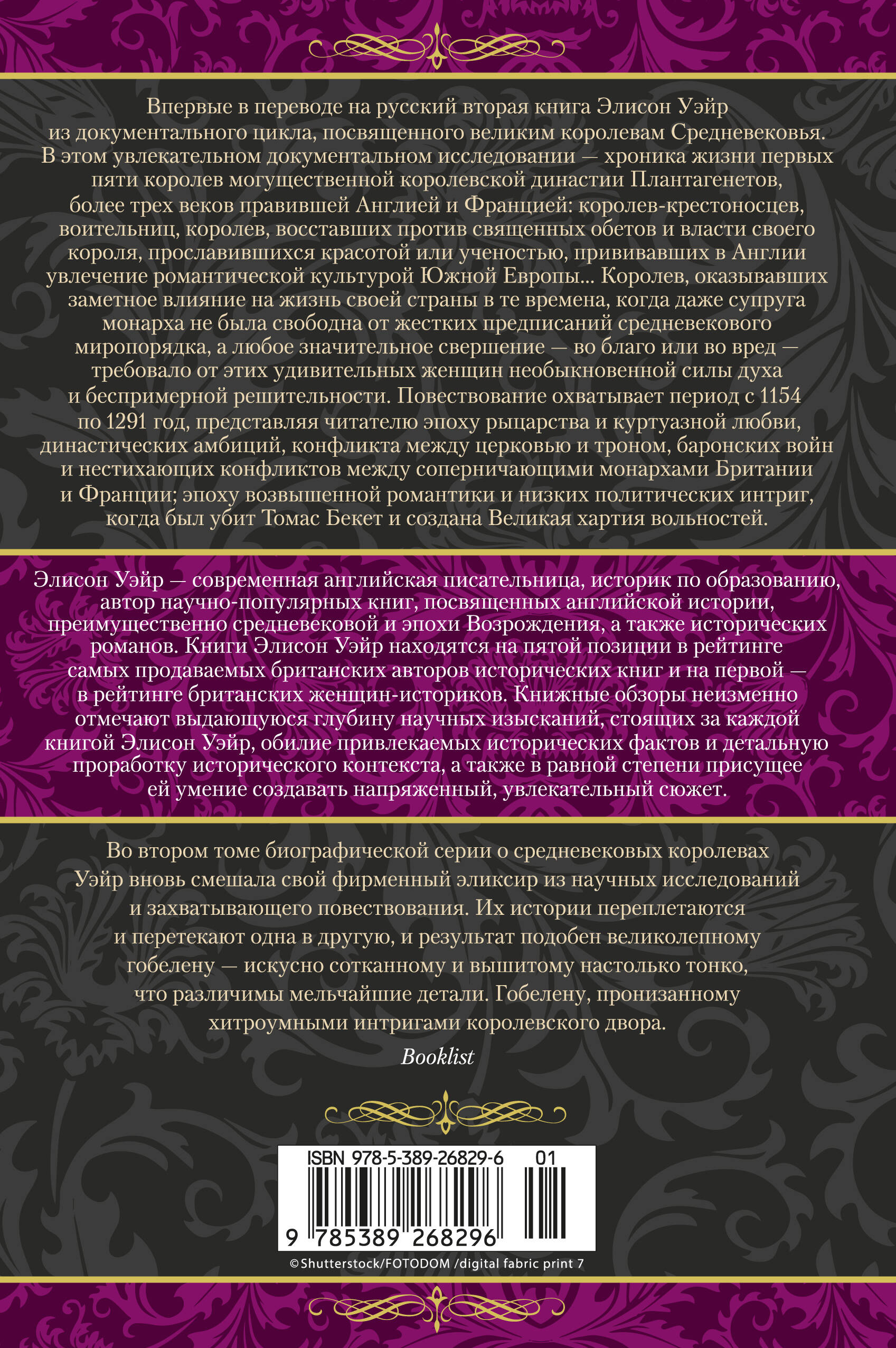 В этом увлекательном документальном исследовании — хроника жизни первых пяти королев могущественной королевской династии Плантагенетов, более трех веков правившей Англией и Францией: королев-крестоносцев, воительниц, королев, восставших против священных обетов и власти своего короля, известных красотой или ученостью, прививавших в Англии увлечение романтической культурой Южной Европы… Королев, оказывавших заметное влияние на жизнь своей страны в те времена, когда даже супруга монарха не была свободна от жестких предписаний средневекового миропорядка, а любое значительное свершение — во благо или во вред — требовало от этих удивительных женщин необыкновенной силы духа и беспримерной решительности.
