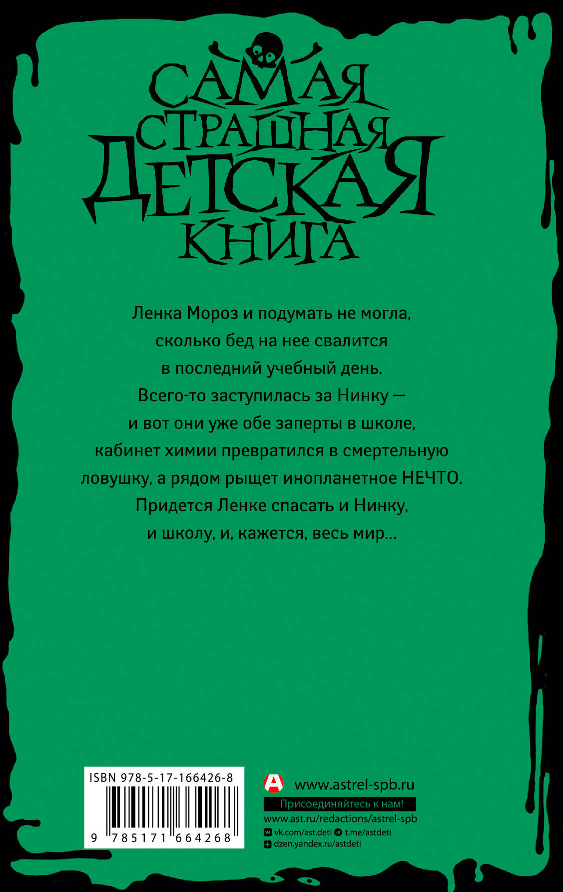 Ленка Мороз и подумать не могла, сколько бед на нее свалится в последний учебный день. Всего-то заступилась за Нинку — и вот они уже обе заперты в школе, кабинет химии превратился в смертельную ловушку, а рядом рыщет инопланетное НЕЧТО. Придется Ленке спасать и Нинку, и школу, и, кажется, весь мир…