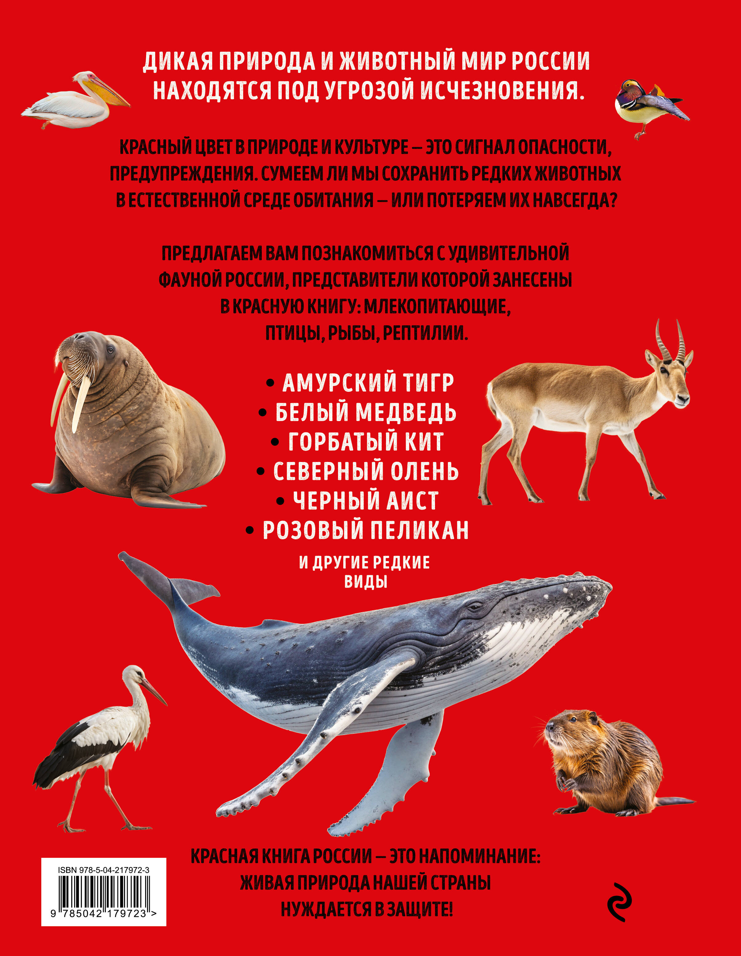 Красная книга России — это уникальное собрание редких и исчезающих из природы видов животного мира: амурского тигра, снежного барса, белого медведя, горбатого кита, сибирского осетра, чёрного аиста, даурского журавля и многих других.