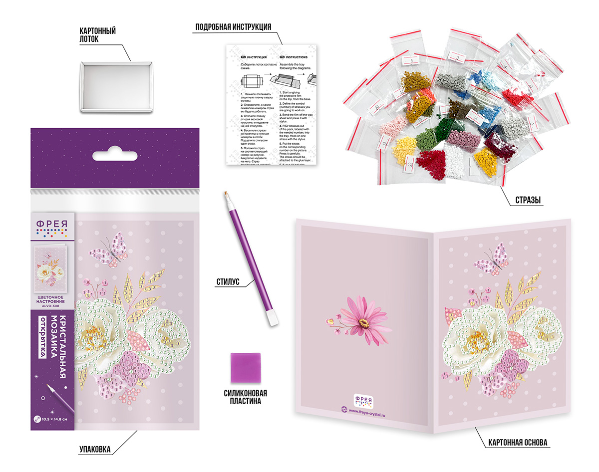 В набор ТМ ФРЕЯ "Кристальная мозаика" входит: