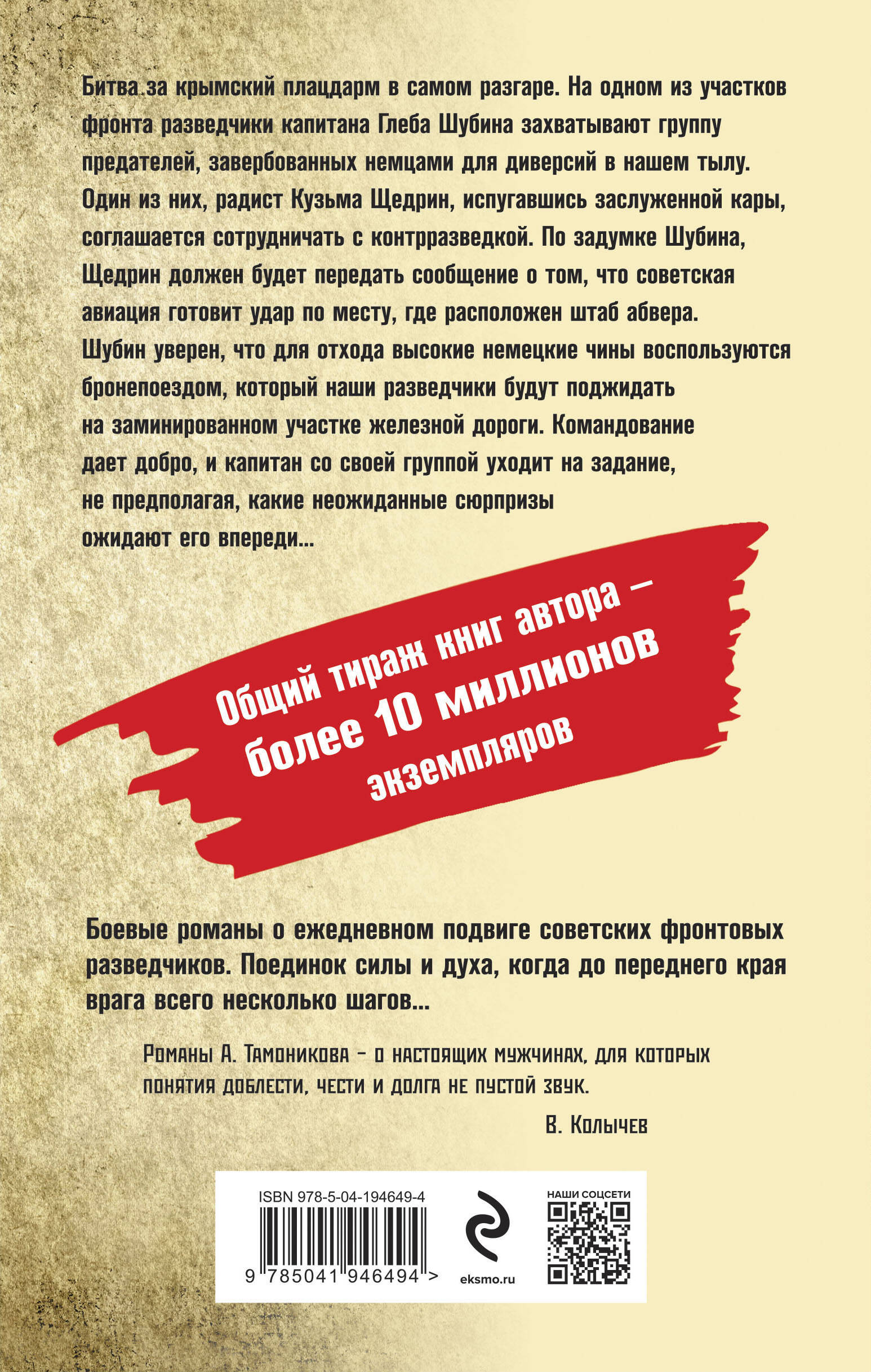 Битва за крымский плацдарм в самом разгаре. На одном из участков фронта разведчики капитана Глеба Шубина захватывают группу предателей, завербованных немцами для диверсий в нашем тылу. Один из них, радист Кузьма Щедрин, испугавшись заслуженной кары, соглашается сотрудничать с контрразведкой. По задумке Шубина, Щедрин должен будет передать сообщение о том, что советская авиация готовит удар по месту, где расположен штаб абвера. Шубин уверен, что для отхода высокие немецкие чины воспользуются бронепоездом, который наши разведчики будут поджидать на заминированном участке железной дороги. Командование дает «добро», и капитан со своей группой уходит на задание, не предполагая, какие неожиданные сюрпризы ожидают его впереди…