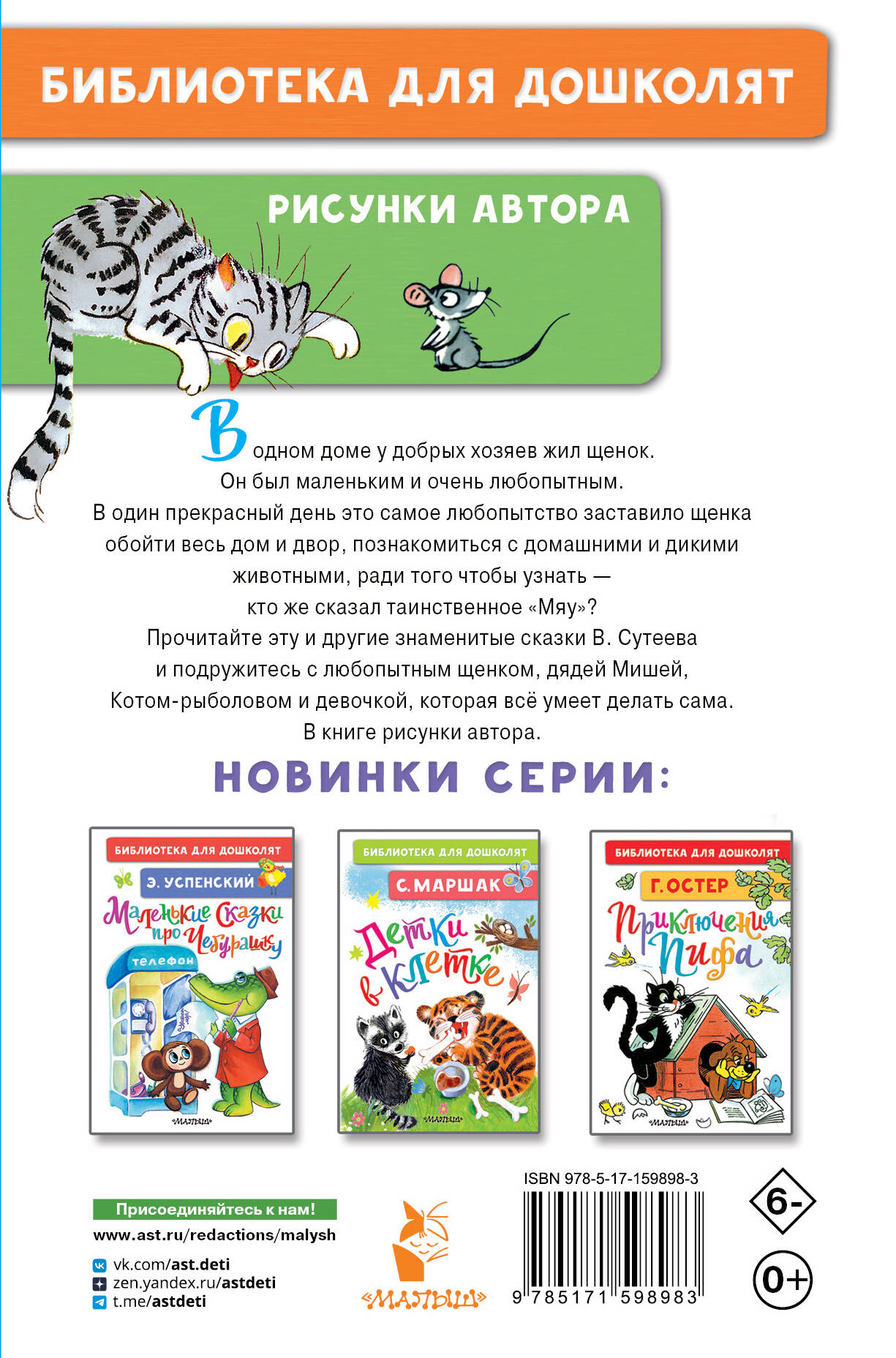 В одном доме у добрых хозяев жил щенок. Он был маленьким и очень любопытным. В один прекрасный день это самое любопытство заставило щенка обойти весь дом и двор, познакомиться с домашними и дикими животными, ради того, чтобы узнать – кто же сказал таинственное «Мяу»? Прочитайте эту и другие знаменитые сказки В. Сутеева и подружитесь с любопытным щенком, дядей Мишей, Котом-рыболовом и девочкой, которая всё умеет делать сама. В книге рисунки автора.