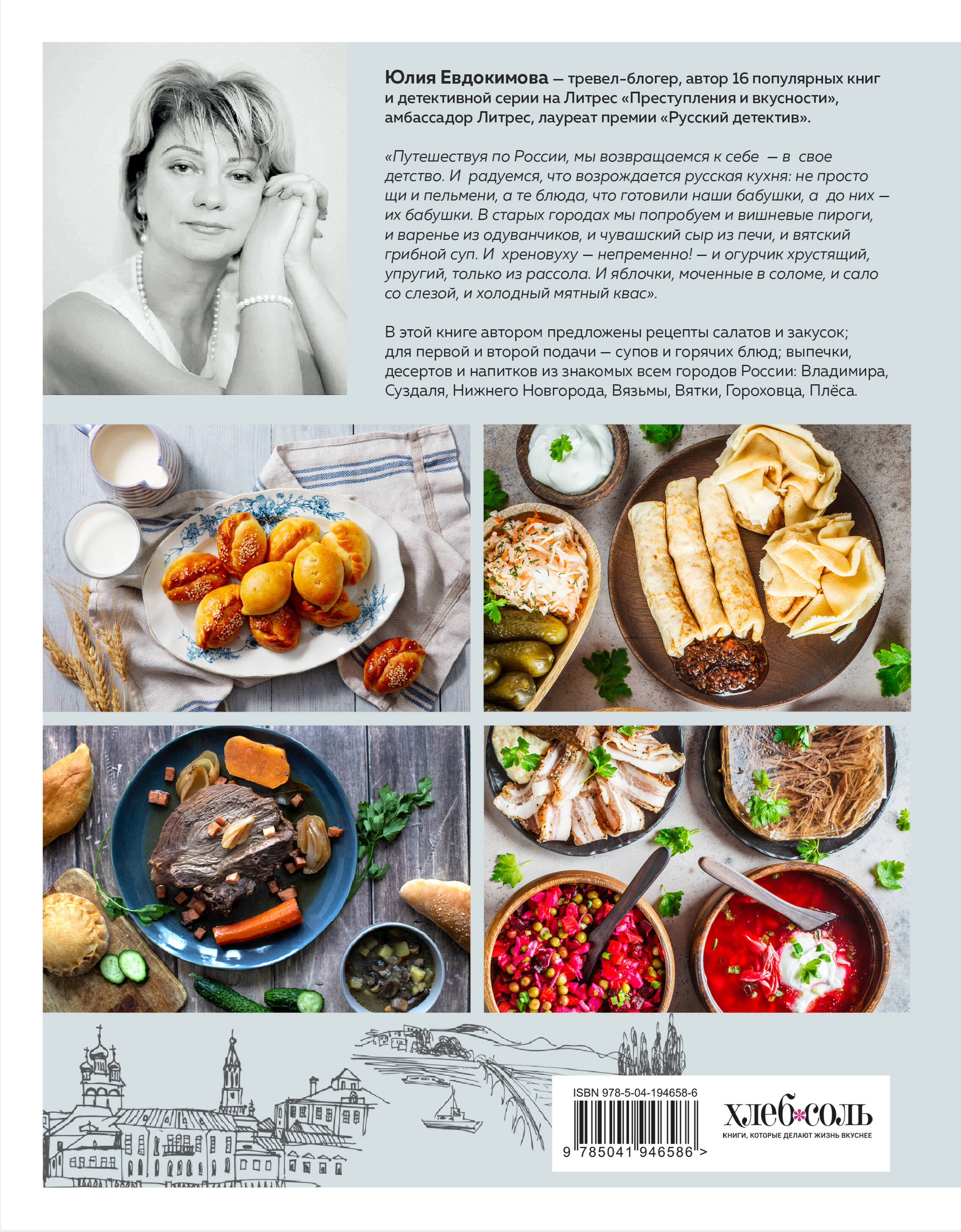 Эта книга для тех, кто не ограничивается в своей повседневной кулинарной жизни блинами, жареной картошечкой с селедочкой, окрошкой, щами, крупами и т.п. Все это вкуснейшие русские блюда, но их список гораздо разнообразнее, чем мы представляем. Ведь русская кухня всегда вбирала в себя опыт соседей — не дальних, но близких. Поэтому в книге Юлия Евдокимова — известный автор гастрономических путешествий по России, Италии и другим странам мира — рассказывает не только о блюдах из Вязников, Вятки, Владимира, Суздаля, Плёса, Гороховца, Тутаева, Нижнего Новгорода, но представляет рецепты чувашской, удмуртской, марийской, пермской кухонь. Аппетитные блюда с загадочными названиями, иногда записанные из уст местных жителей, с их особым говорком и юмором, красочные фотографии городов и иллюстрации кушаний из разных уголков России, — всем этим полна книга, все это дарит автор благодарным читателям.