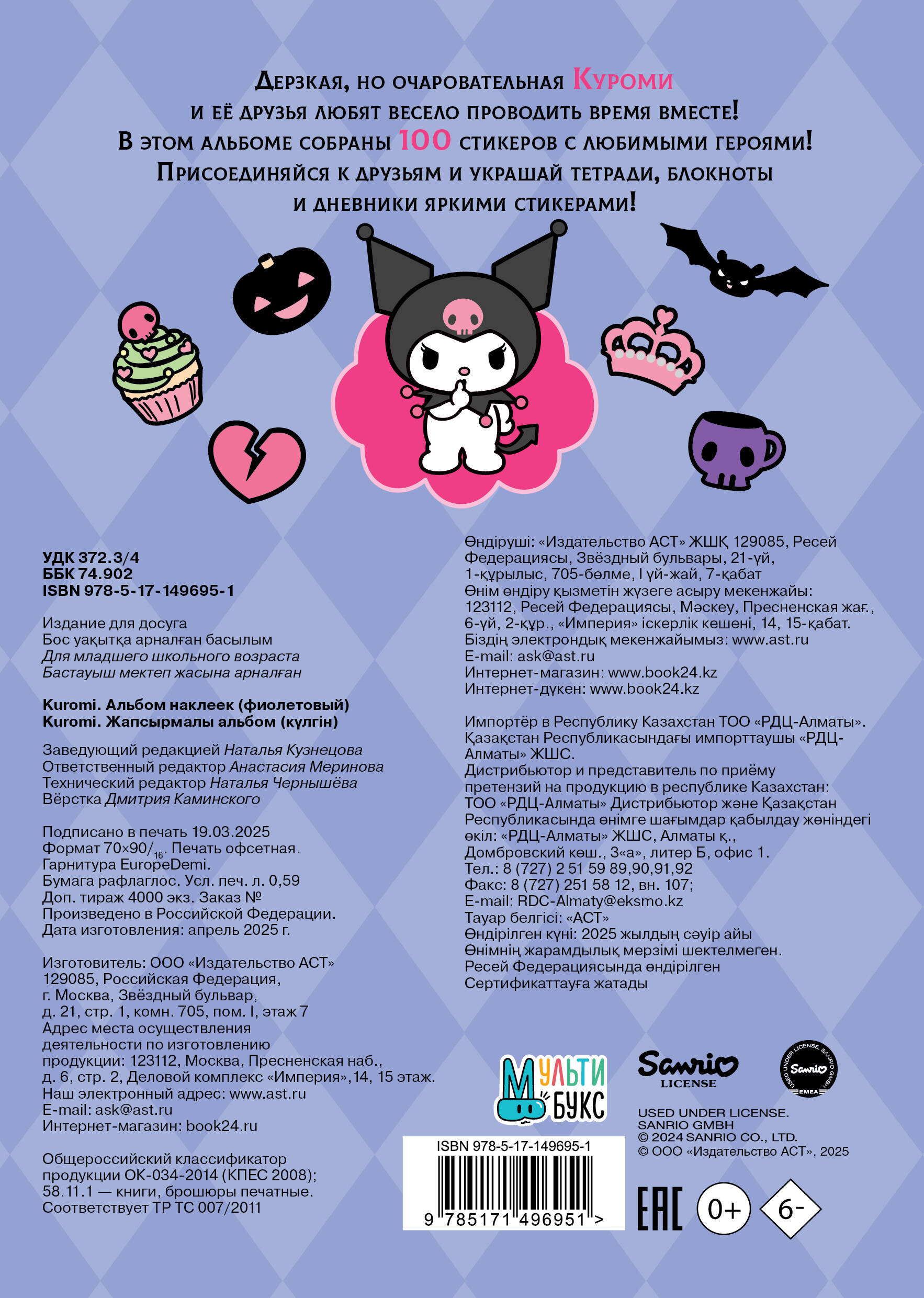 Дерзкая, но очаровательная Куроми и ее друзья любят весело проводить время вместе! В этом альбоме собраны 100 стикеров с любимыми героями!