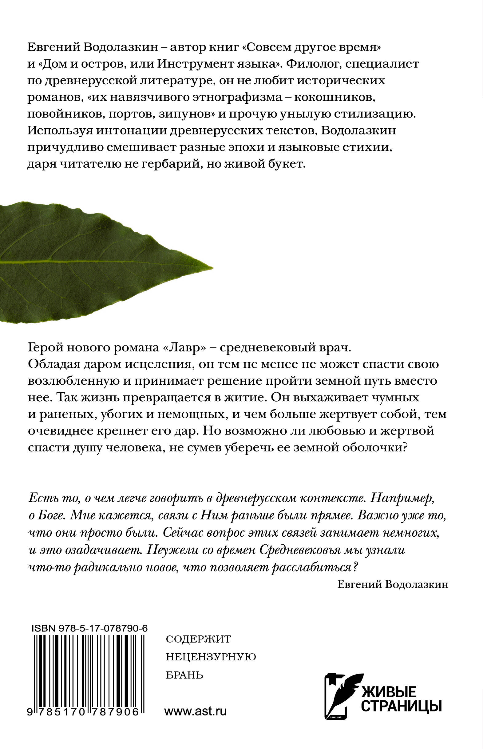 Первое издание культового романа, полюбившегося сотням тысяч россиян. Писатель, филолог, специалист по древнерусской литературе, Евгений Водолазкин рассказал историю средневекового врача так, что она нашла отклик в сердцах и умах многих читателей.