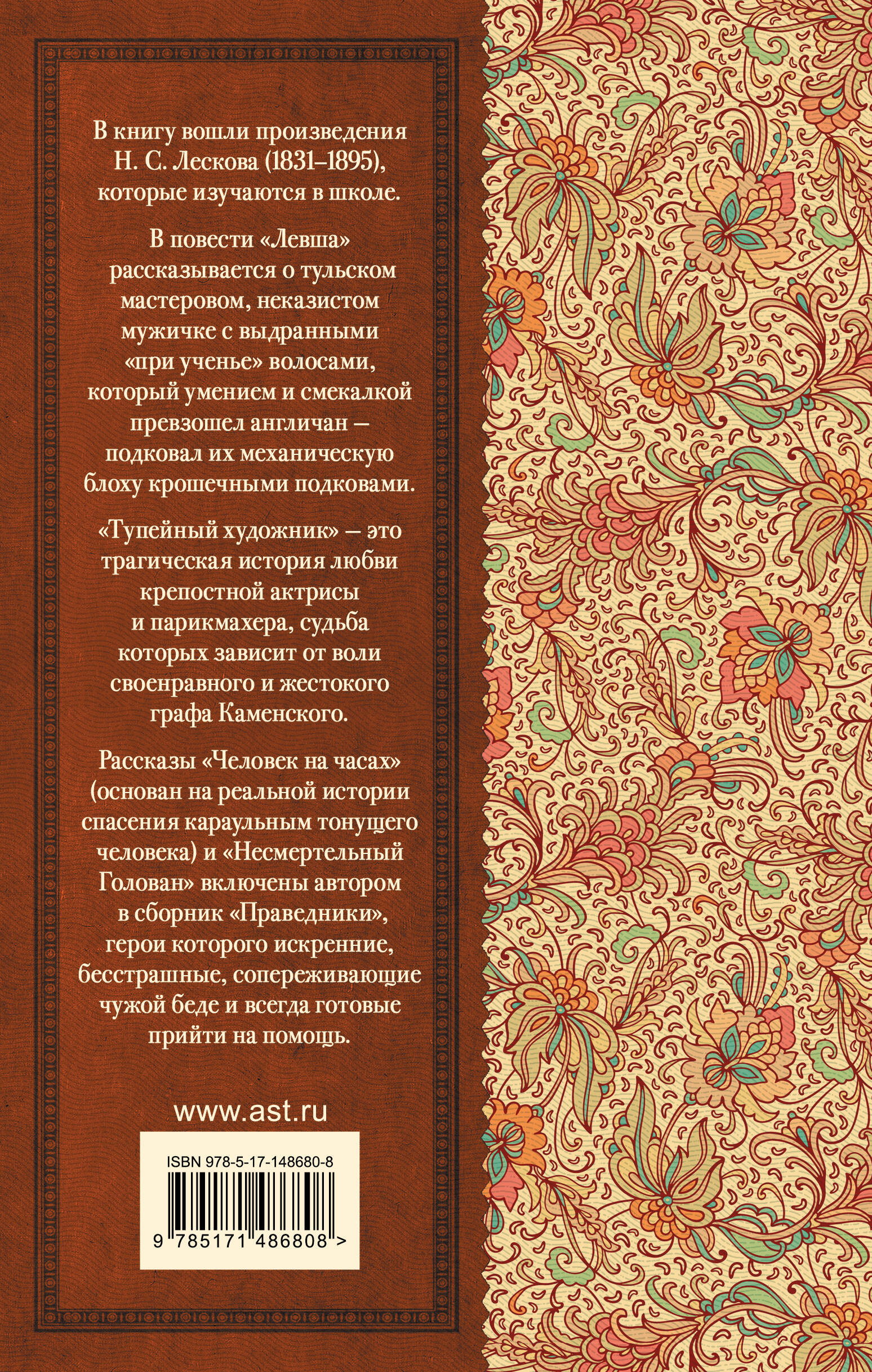 В книгу вошла повесть «Левша» об умельце, который смог подковать блоху, а также рассказы «Тупейный художник», «Человек на часах» и «Несмертельный Голован». Все эти произведения входят в список рекомендованной школьникам литературы.