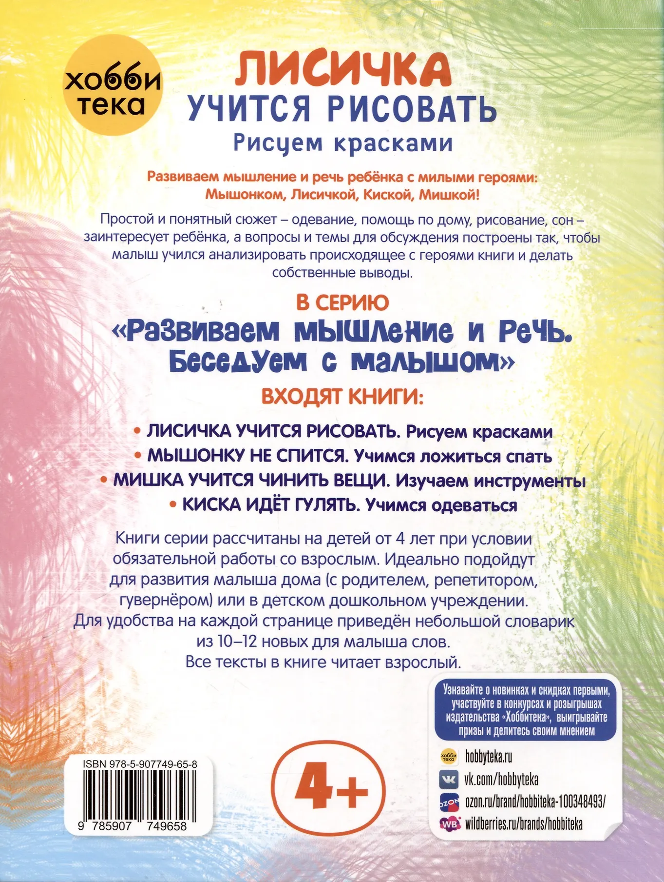 Книжки этой серии предназначены для развития речи ребёнка, расширения его словарного запаса, но в первую очередь они помогут взрослым правильно выстроить разговор с детьми на интересную для них тему. Вопросы и темы для бесед подобраны так, чтобы малыш, играя, учился размышлять, почему герои историй поступают тем или иным образом, где они ошибаются, а где ведут себя правильно. Не нужно бояться сложных для ребёнка вопросов. Пусть ребенок размышляет, ищет решение. Поощряйте его за поиск ответа.
