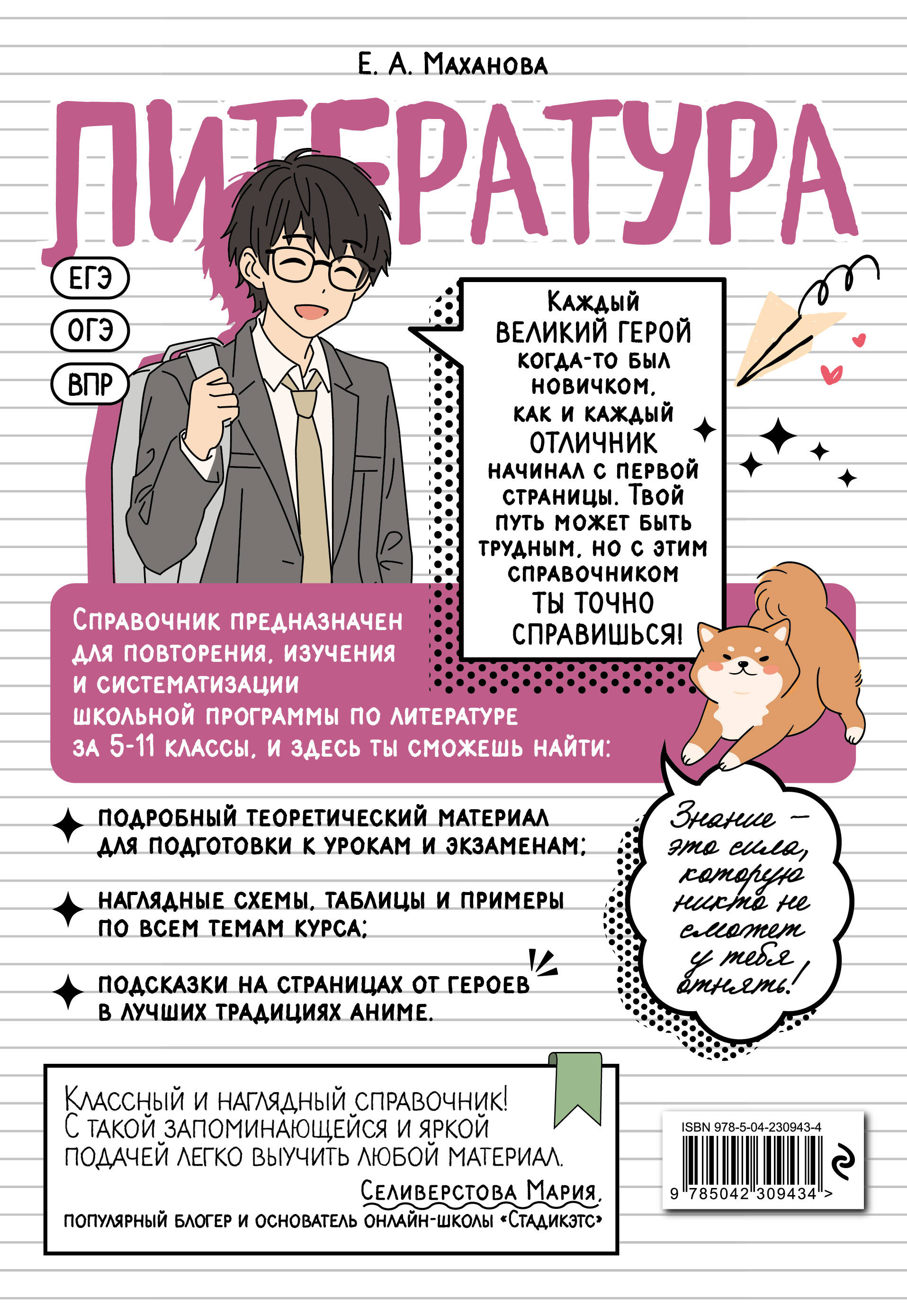 Справочник по литературе в аниме-стиле — это современное учебное пособие для учащихся 5—11 классов, которое объединяет школьные знания и визуальную эстетику аниме-культуры. Вместо сухих определений и скучных параграфов на страницах книг вас будут ждать милые и смешные аниме-персонажи, чьи подсказки помогут разобрать материал любой сложности в более живом и увлекательном формате, подготовиться к урокам или предстоящим экзаменам. Более того, вся теория дополнительно сопровождается удобными схемами, забавными рисунками и наглядными примерами. Такой креативный визуальный подход к обучению обеспечивает лёгкость восприятия и эффективность запоминания информации. Прокачай свой уровень на максимум и пройди весь школьный курс вместе с героями в стиле аниме!