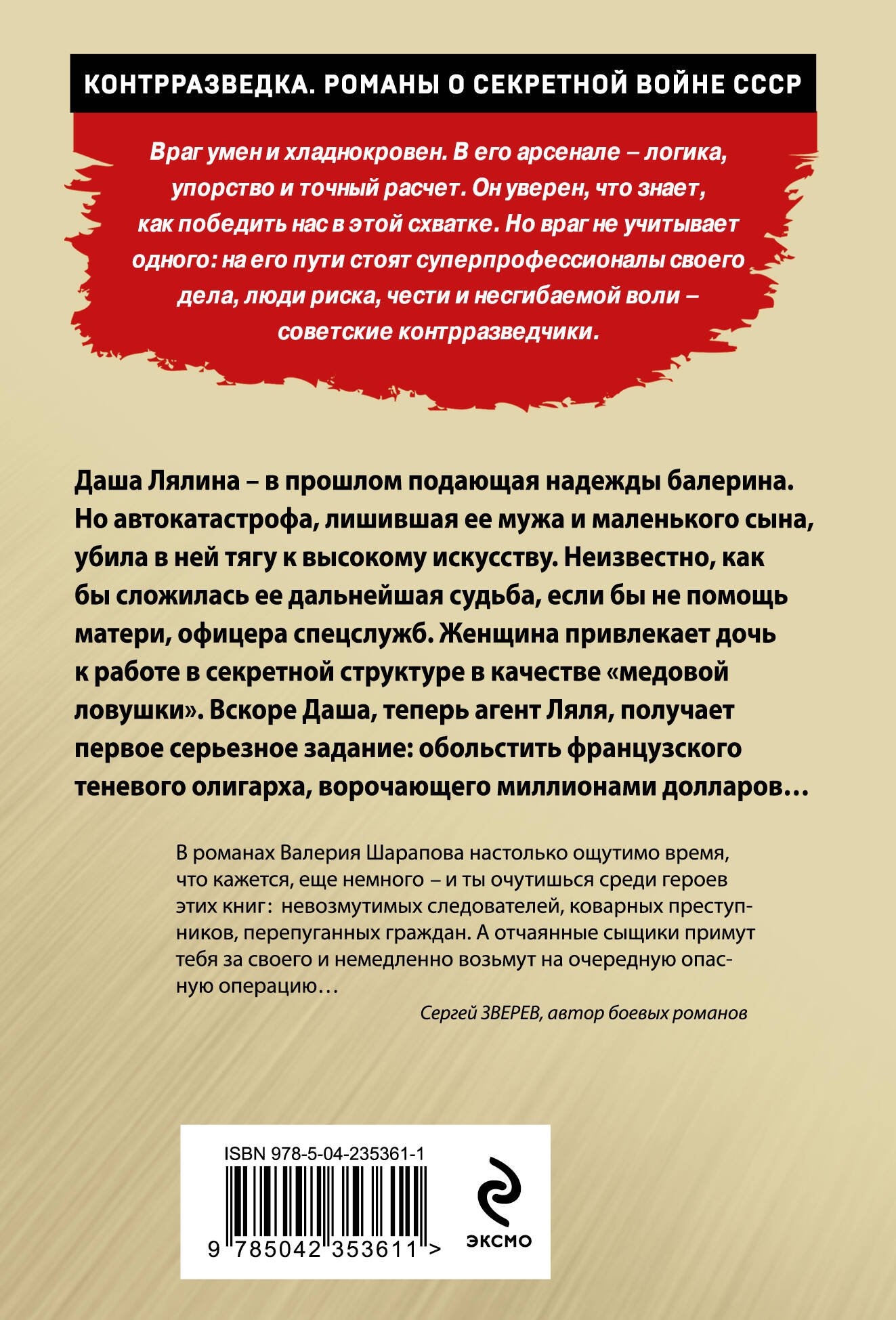 Даша Лялина — в прошлом подающая надежды балерина. Но автокатастрофа, лишившая ее мужа и маленького сына, убила в ней тягу к высокому искусству. Неизвестно, как бы сложилась ее дальнейшая судьба, если бы не помощь матери, офицера спецслужб. Женщина привлекает дочь к работе в секретной структуре в качестве «медовой ловушки». Вскоре Даша, теперь агент Ляля, получает первое серьезное задание: обольстить французского теневого олигарха, ворочающего миллионами долларов…