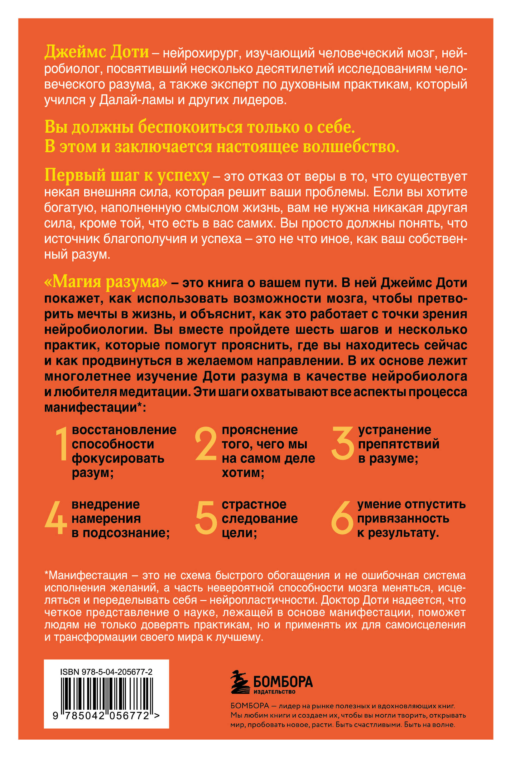 «Должен признаться, что до прочтения этой глубоко увлекательной книги я всегда относил понятие "манифестация" к области нью-эйджевской чепухи, наряду с астрологией, Таро и тому подобному. Джеймс Доти, знаменитый нейробиолог и нейрохирург, заставил меня снова задуматься. Он действительно заставил меня задуматься. Книга "Магия разума" — это замечательное и великолепно написанное приключение в разум и его скрытые тайны. Возможно, она не позволит вам создать Ferrari, но она поможет вам стать на путь получения гораздо более ценных призов». — СТИВЕН ФРАЙ, актер и комик