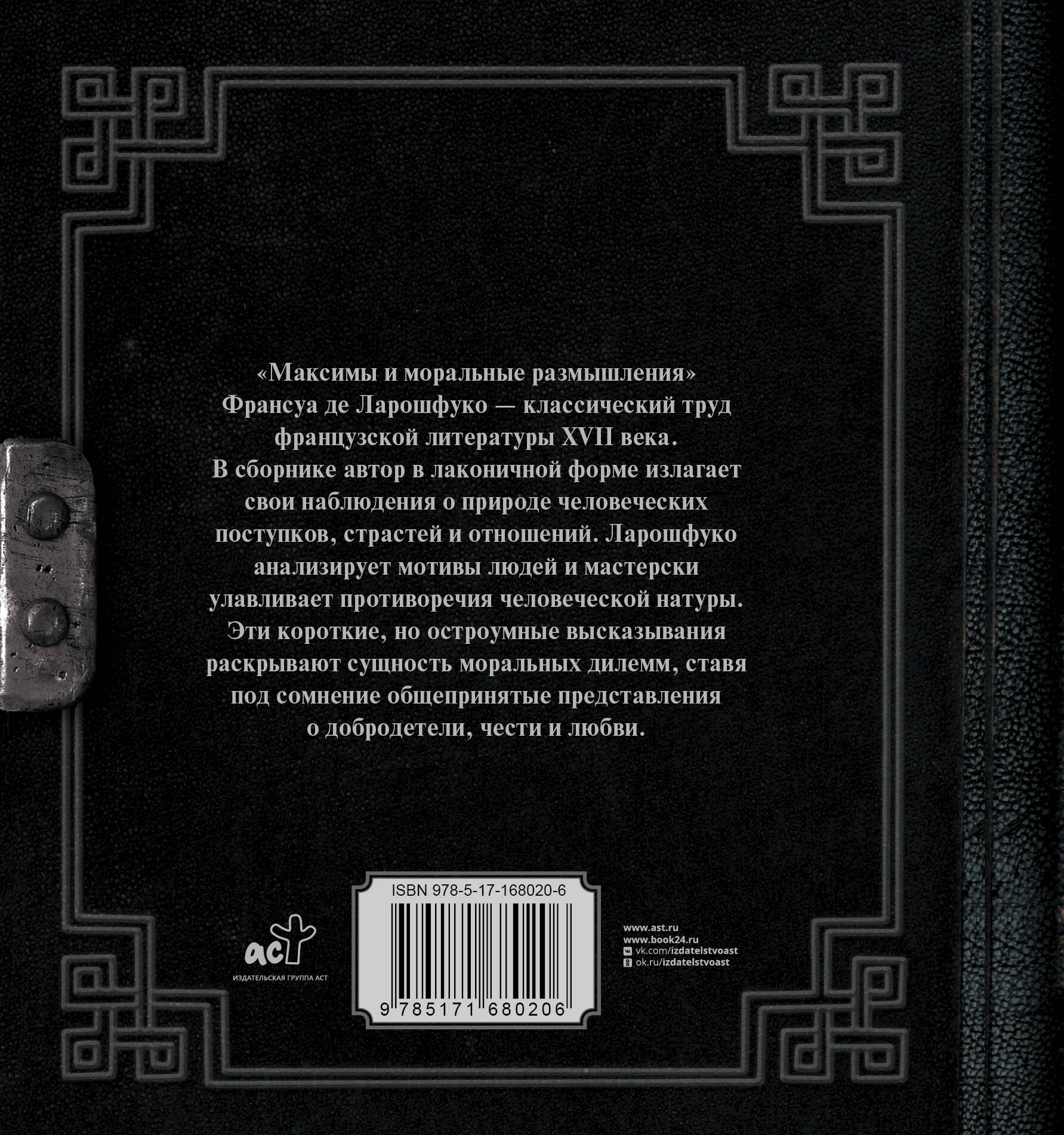 "Максимы и моральные размышления" Франсуа де Ларошфуко - классический труд французской литературы XVII века. В сборнике автор в лаконичной форме выражает свои наблюдения о природе человеческих поступков, страстей и отношений. Ларошфуко анализирует мотивы людей и мастерски улавливает противоречия человеческой натуры. Эти короткие, но остроумные высказывания раскрывают сущность моральных дилемм, ставя под сомнение общепринятые представления о добродетели, чести и любви.