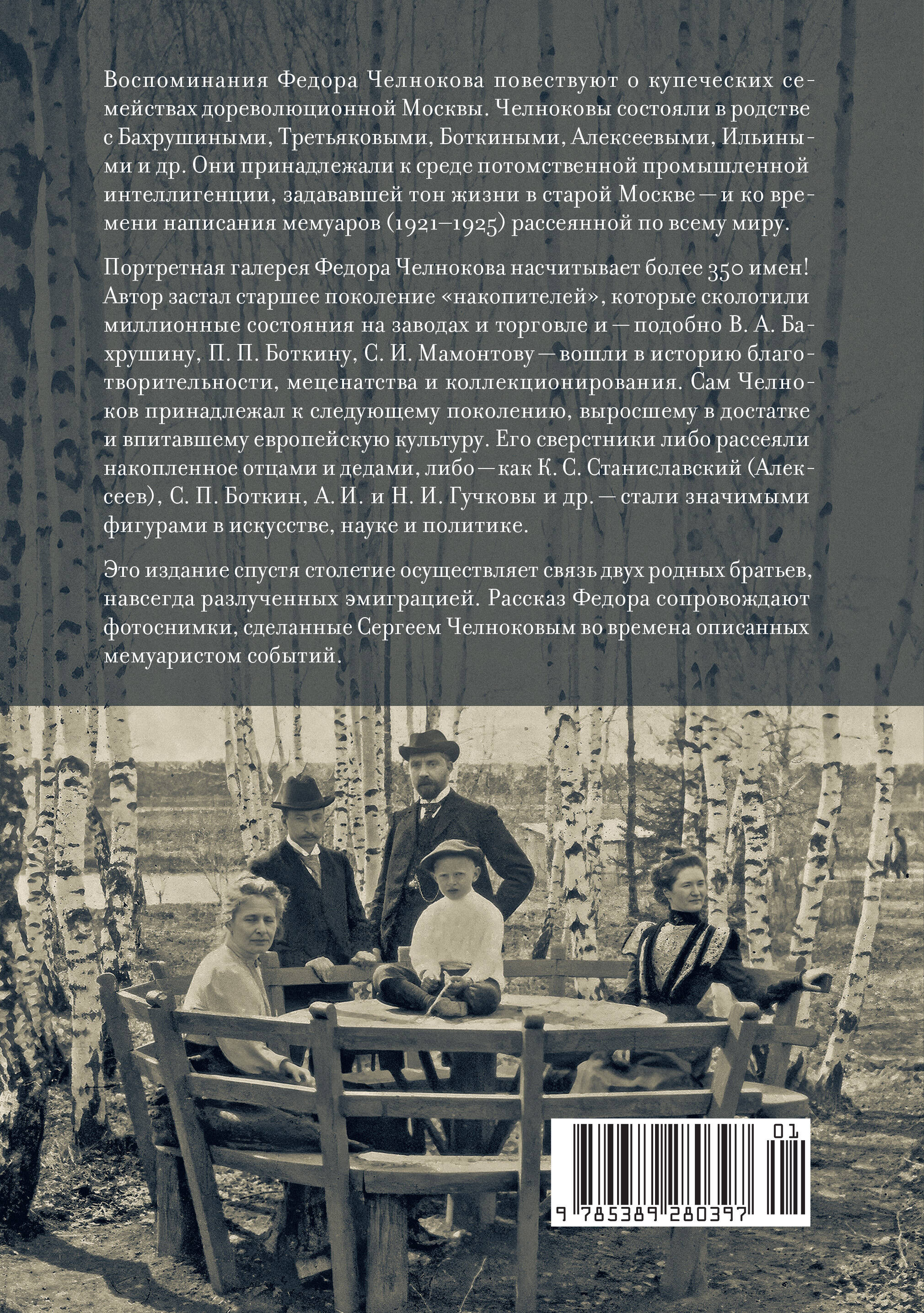 Воспоминания Федора Челнокова посвящены купеческим семействам дореволюционной Москвы. Челноковы состояли в родстве со многими династиями — Бахрушиными, Третьяковыми, Боткиными, Алексеевыми, Ильиными и др. Они принадлежали среде потомственной промышленной интеллигенции, задававшей тон жизни в старой Москве — и уже ко времени написания мемуаров (1925) рассеянной по всему миру.