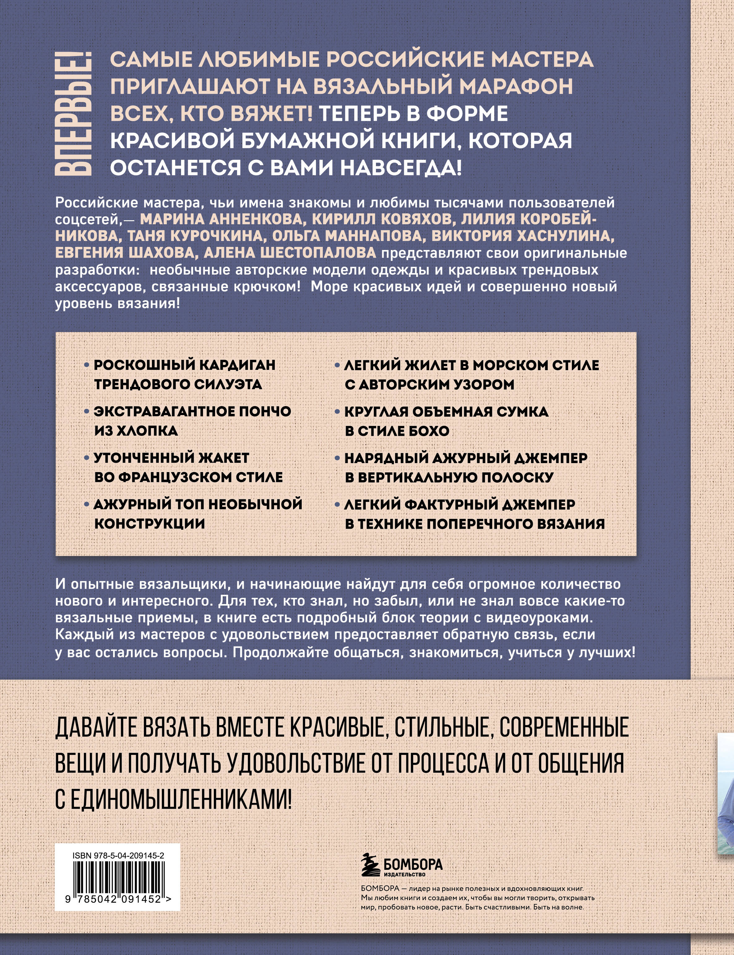 Впервые! Самые любимые российские мастера приглашают на вязальный марафон всех, кто любит вязать крючком в компании единомышленников! Теперь любимые марафоны и совместники в форме красивой бумажной книги, которая останется с вами навсегда.