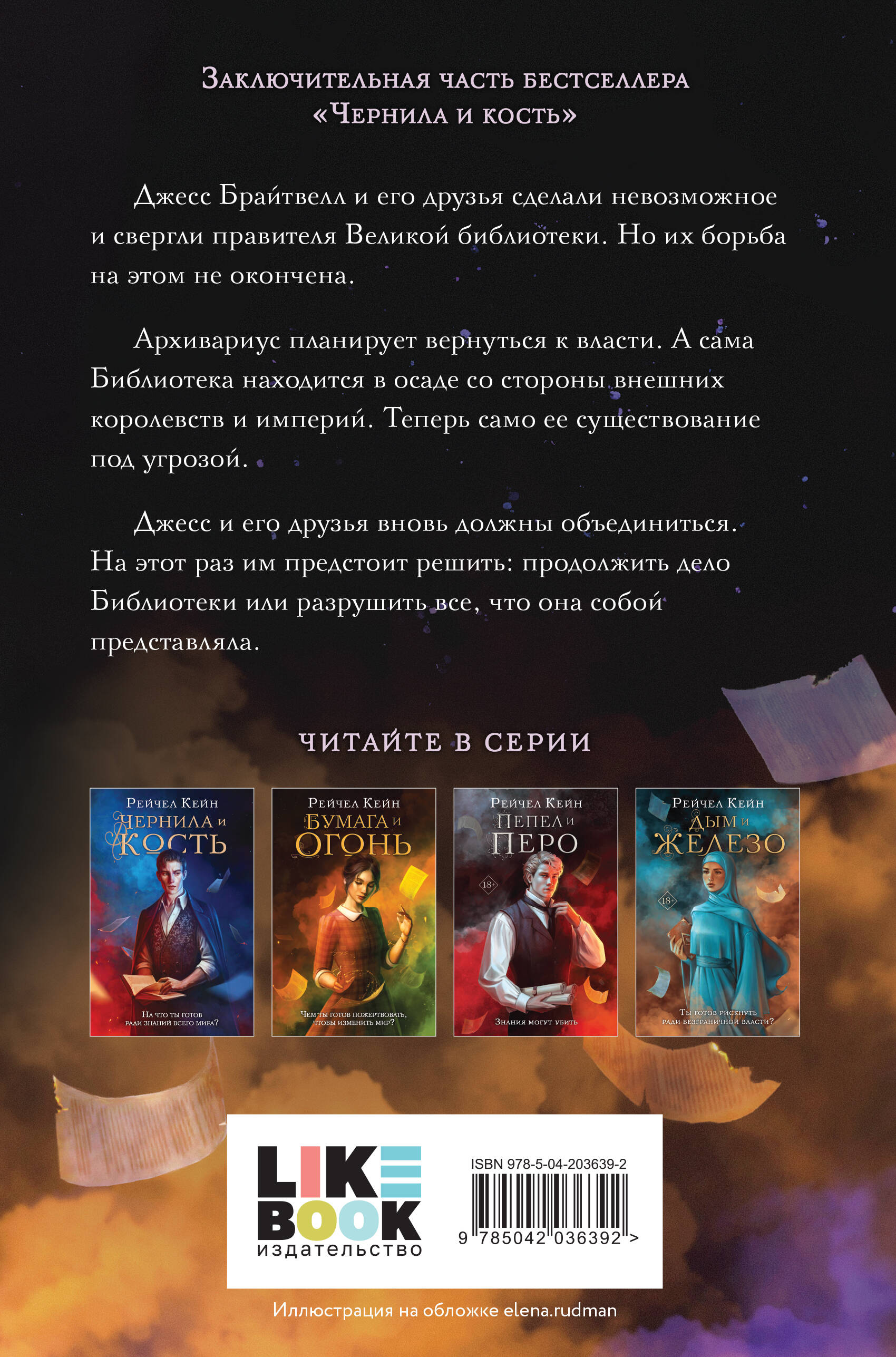 Заключительная книга популярной на весь мир серии «Великая библиотека» Рейчел Кейн. Продолжение романов «Чернила и кость», «Бумага и огонь», «Пепел и перо» и «Дым и железо».