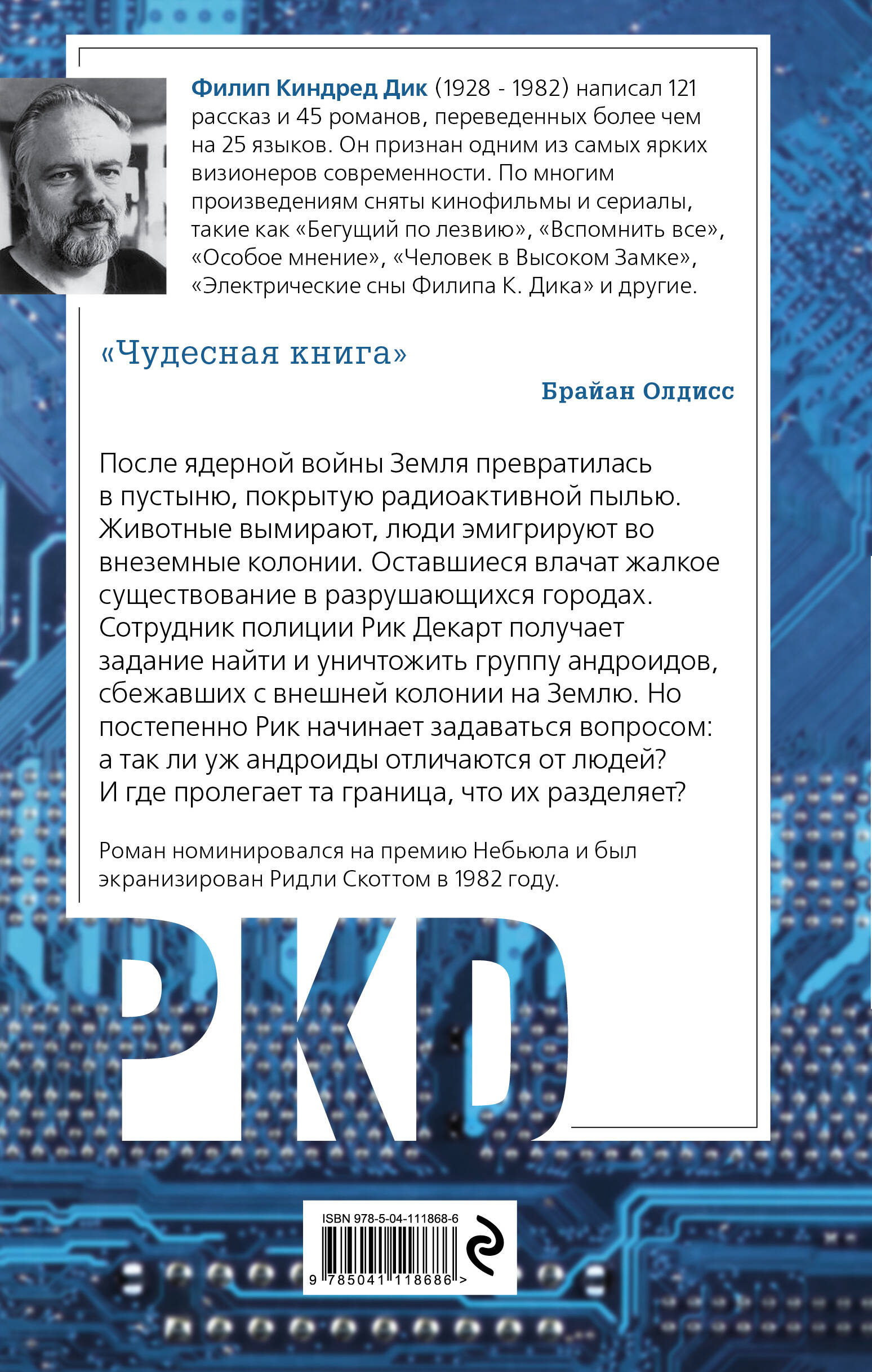 Филип Киндред Дик (1928 - 1982) написал 121 рассказ и 45 романов, переведенных более чем на 25 языков. Он признан одним из самых ярких визионеров современности. По многим произведениям сняты кинофильмы и сериалы, такие как «Бегущий по лезвию», «Вспомнить всё», «Особое мнение», «Человек в Высоком Замке», «Электрические сны Филипа К. Дика» и другие.