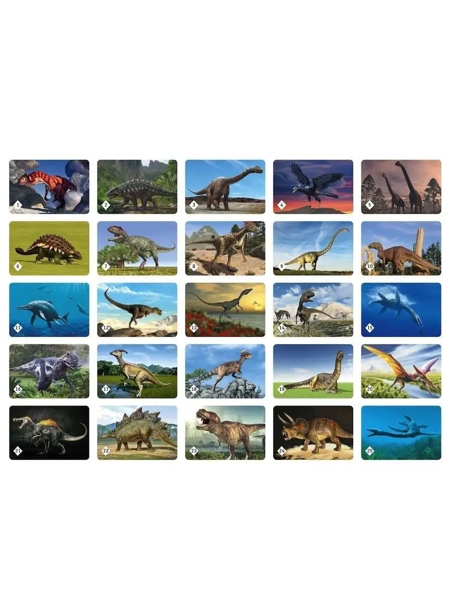 Мемо «Мир динозавров» от Нескучных игр – увлекательная развивающая игра для юных исследователей вселенной, современная версия популярных игр типа Мемо и Дубль, Блеф, Кортекс, где успех зависит не от удачи, а от внимательности и памяти игрока. В наборе 50 красочных карточек с парными изображениями различных динозавров и информативная брошюра с описанием этих увлекательных существ. Правила игры просты: все карточки раскладываются лицевой стороной вниз, начинает самый младший игрок, и далее ход передается по часовой стрелке. Каждый игрок переворачивает 2 карты, чтобы все видели изображения – если карты совпадают, игрок забирает их себе и ходит снова, если разные – кладет обратно и ход переходит к следующему участнику. Побеждает тот, кто соберет больше всего пар. Эта настолка особенно полезна для развития зрительной памяти и внимания, тренировки быстроты реакции и расширения кругозора. В процессе игры дети не только весело проводят время с семьей, но и узнают много нового о динозаврах и их среде обитания. У вас будет возможность узнать кто такой птеродактиль и диплодок, спинозавр и велоцираптор. Дети любят этих удивительных древних ящеров, и будут рады узнать что-то новое в игре. Благодаря компактному размеру игру удобно брать с собой в дорогу или на праздники – она отлично подойдет для детей от 5 лет и всей семьи. Это прекрасный подарок к дню рождения юного исследователя, выпускному из детского сада, 1 сентября, Новому году или любому семейному празднику. Подарите ребенку возможность исследовать этот вымерший вид в увлекательной игровой форме – это отличный способ совместить приятное с полезным и провести время всей семьей с пользой для развития!