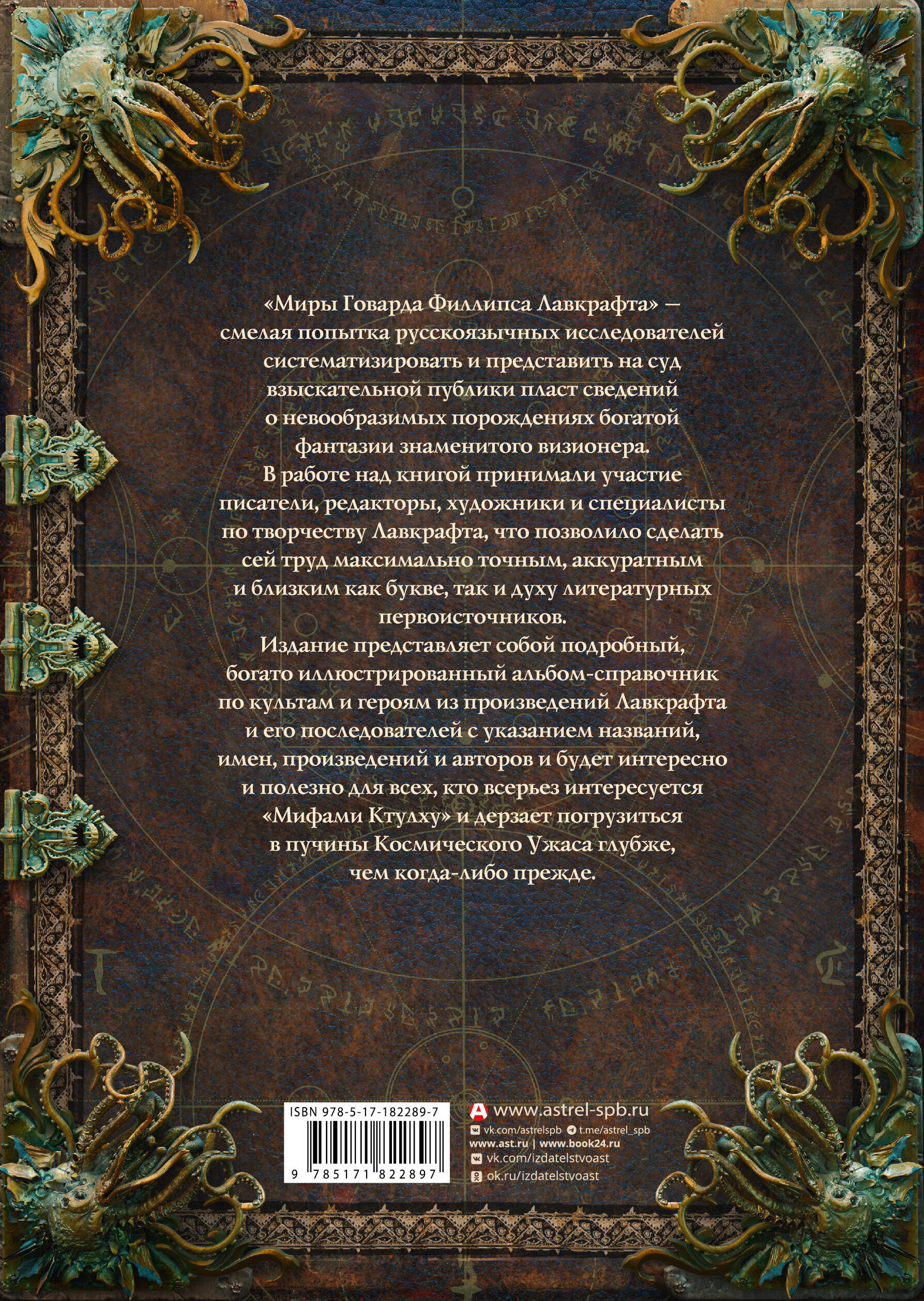 "Миры Говарда Филлипса Лавкрафта" — смелая попытка русскоязычных исследователей систематизировать и представить на суд взыскательной публики пласт сведений о невообразимых порождениях богатой фантазии знаменитого визионера.