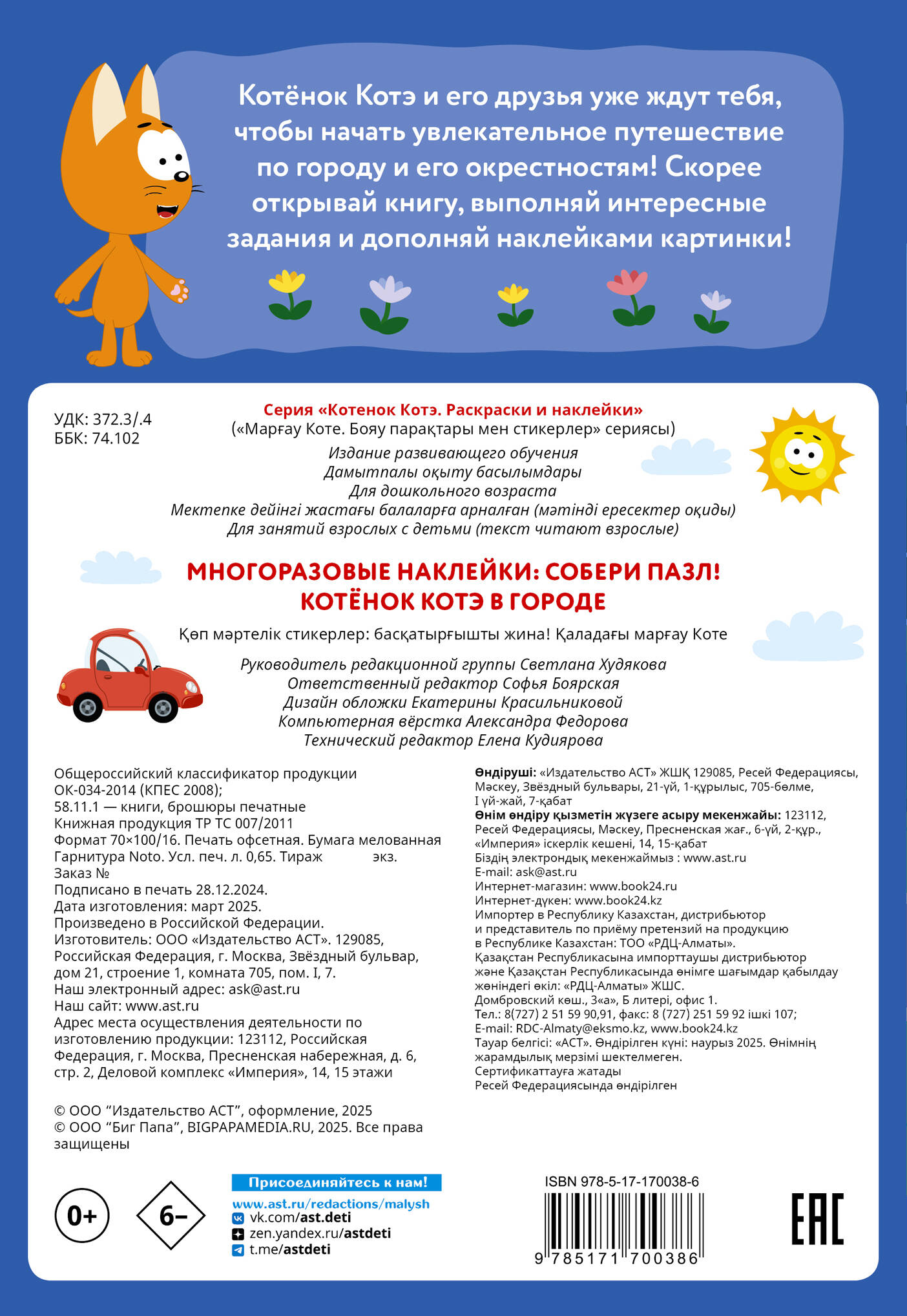 Эта увлекательная книга с яркими пазлами-наклейками и интересными заданиями создана специально для маленьких поклонников мультфильма «Котёнок Котэ»!