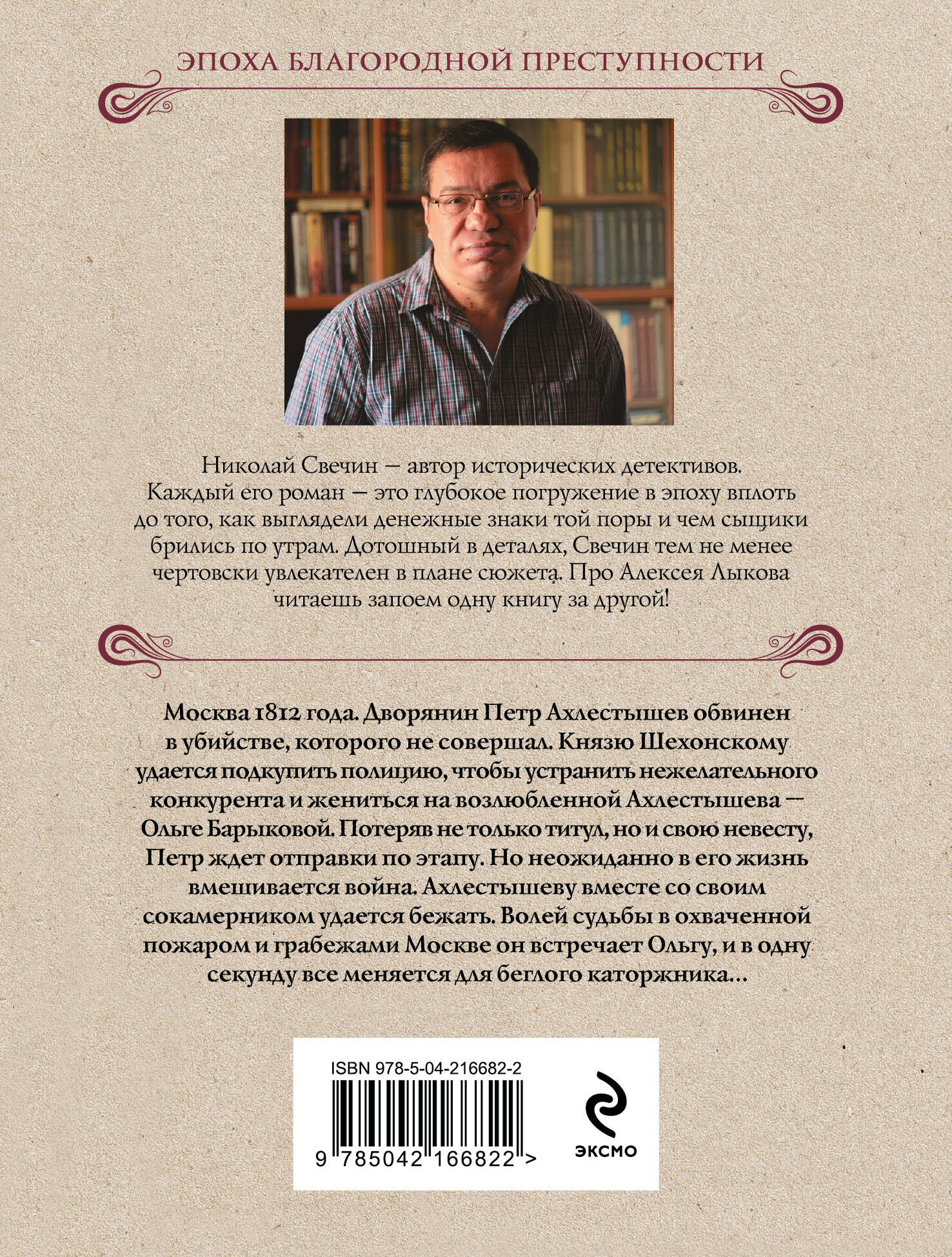 Москва 1812 года. Дворянин Петр Ахлестышев обвинен в убийстве, которого не совершал. Князю Шехонскому удается подкупить полицию, чтобы устранить нежелательного конкурента и жениться на возлюбленной Ахлестышева — Ольге Барыковой. Потеряв не только титул, но и свою невесту, Петр ждет отправки по этапу. Но неожиданно в его жизнь вмешивается война. Ахлестышеву вместе со своим сокамерником удается бежать. Волей судьбы в охваченной пожаром и грабежами Москве он встречает Ольгу, и в одну секунду все меняется для беглого каторжника…