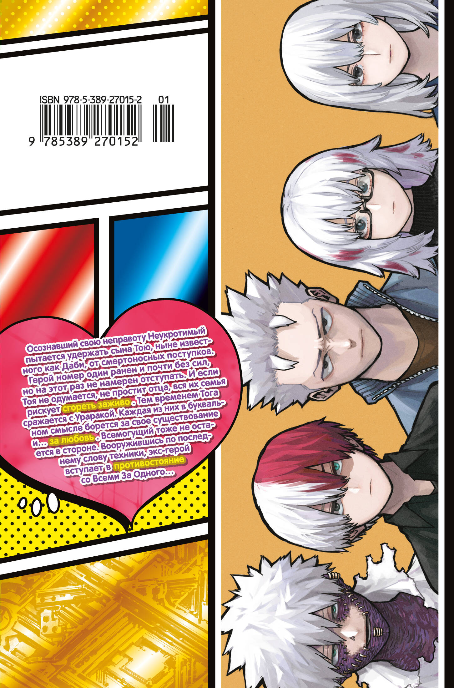 Осознавший свою неправоту Неукротимый пытается удержать сына Тою, ныне известного как Даби, от смертоносных поступков. Герой номер один ранен и почти без сил, но на этот раз не намерен отступать. На выручку Неукротимому бросилась вся его семья – жена Рэй и дети. И если Тоя не одумается, если не простит отца, все они рискуют сгореть заживо. Тем временем Тога сражается с Ураракой. Каждая из них в буквальном смысле борется за свое существование и… за любовь. Всемогущий тоже не остается в стороне. Вооружившись по последнему слову техники, экс-герой вступает в противостояние со Всеми За Одного…