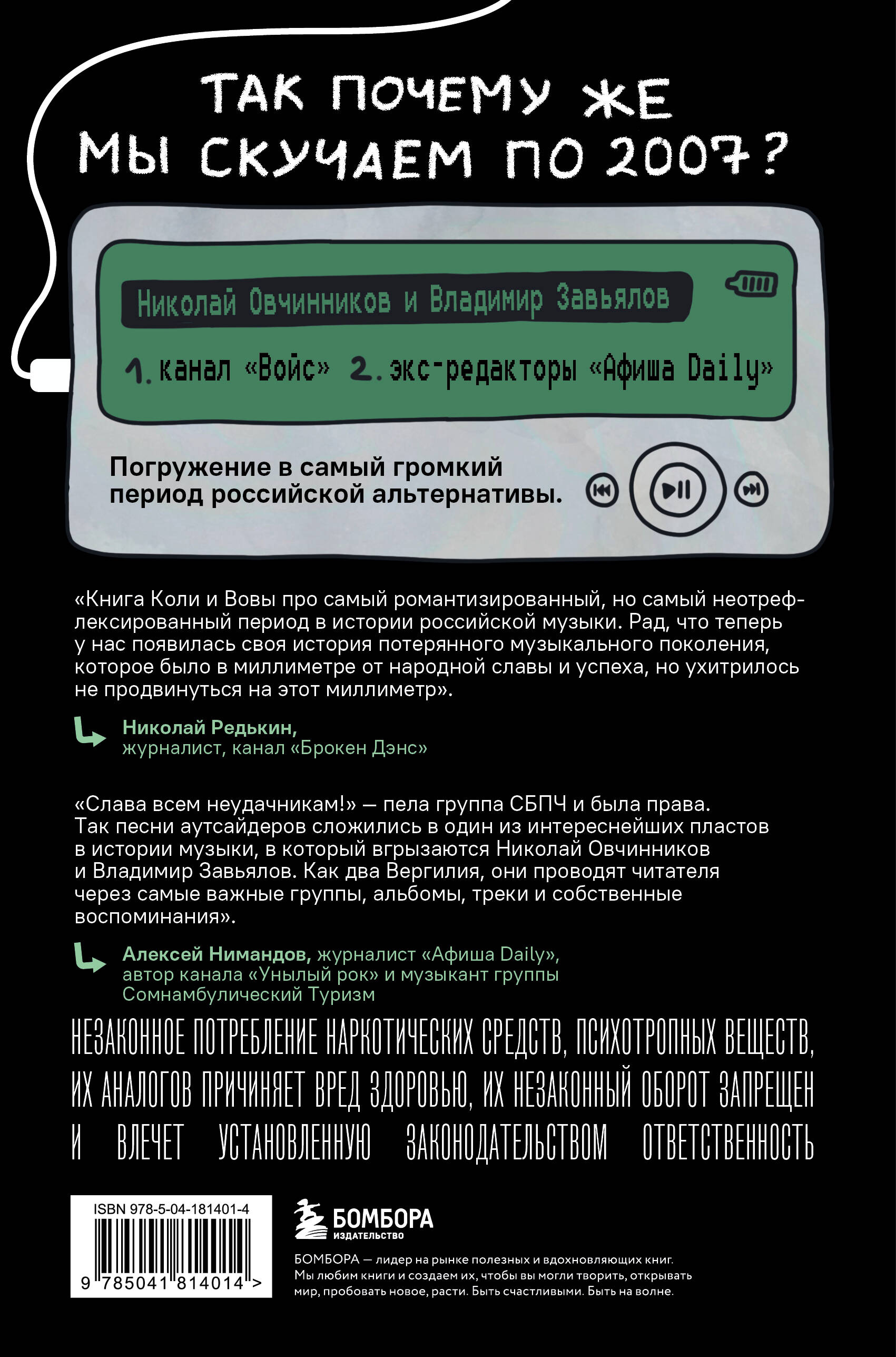 «Книга Коли и Вовы про самый романтизированный — все знают мем про "верните мне мой 2007-й", даже те, кто сроду в этом 2007-м и жить не собирался, — но самый неотрефлексированный период в истории российской музыки. Рад, что теперь у нас появилась своя история потерянного музыкального поколения, которое было в миллиметре от народной славы и успеха, но ухитрилось не продвинуться на этот миллиметр». — Николай Редькин, журналист, канал «Брокен Дэнс»