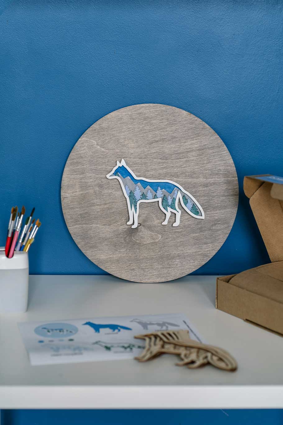 Лисица-сестрица — ушки на макушке, хвостом хитрости прикрыла. Набор для раскрашивания «Лиса» — это объемная фигурка из дерева. Макет состоит из 5 деталей, которые окрашиваются в нужный цвет. Высушите все элементы и скрепите между собой — встречайте удивительную 3Д-картину! В комплект входят: деревянные детали (5 слоев), кисть и краски, клей ПВА, крепеж, подробная инструкция. Дополнительно вы можете приобрести круглое панно 35 см. Цвета: черный/белый, серый/графитовый. Уровень сложности: легкий. Количество слоев/цветов: 5/5 Размер фигурки: 190х140мм