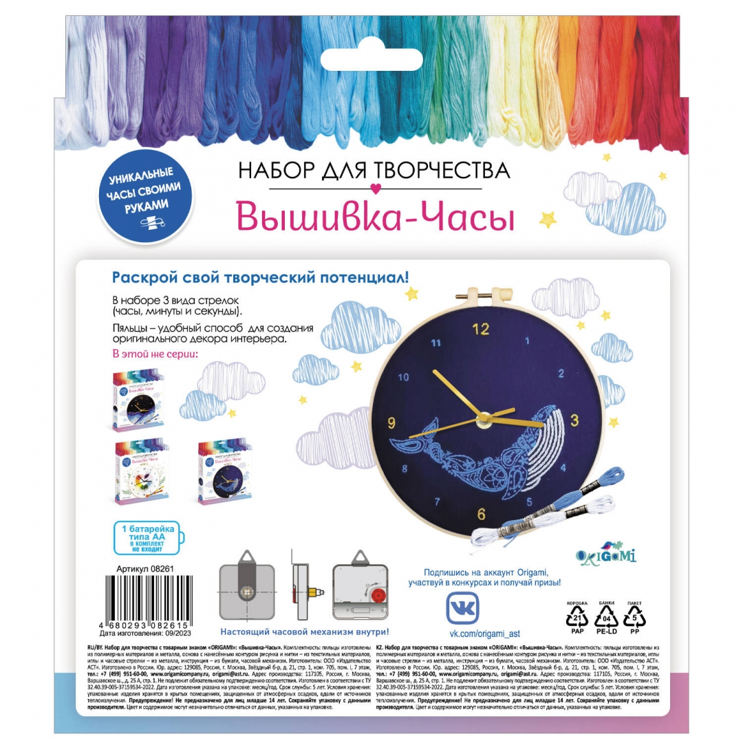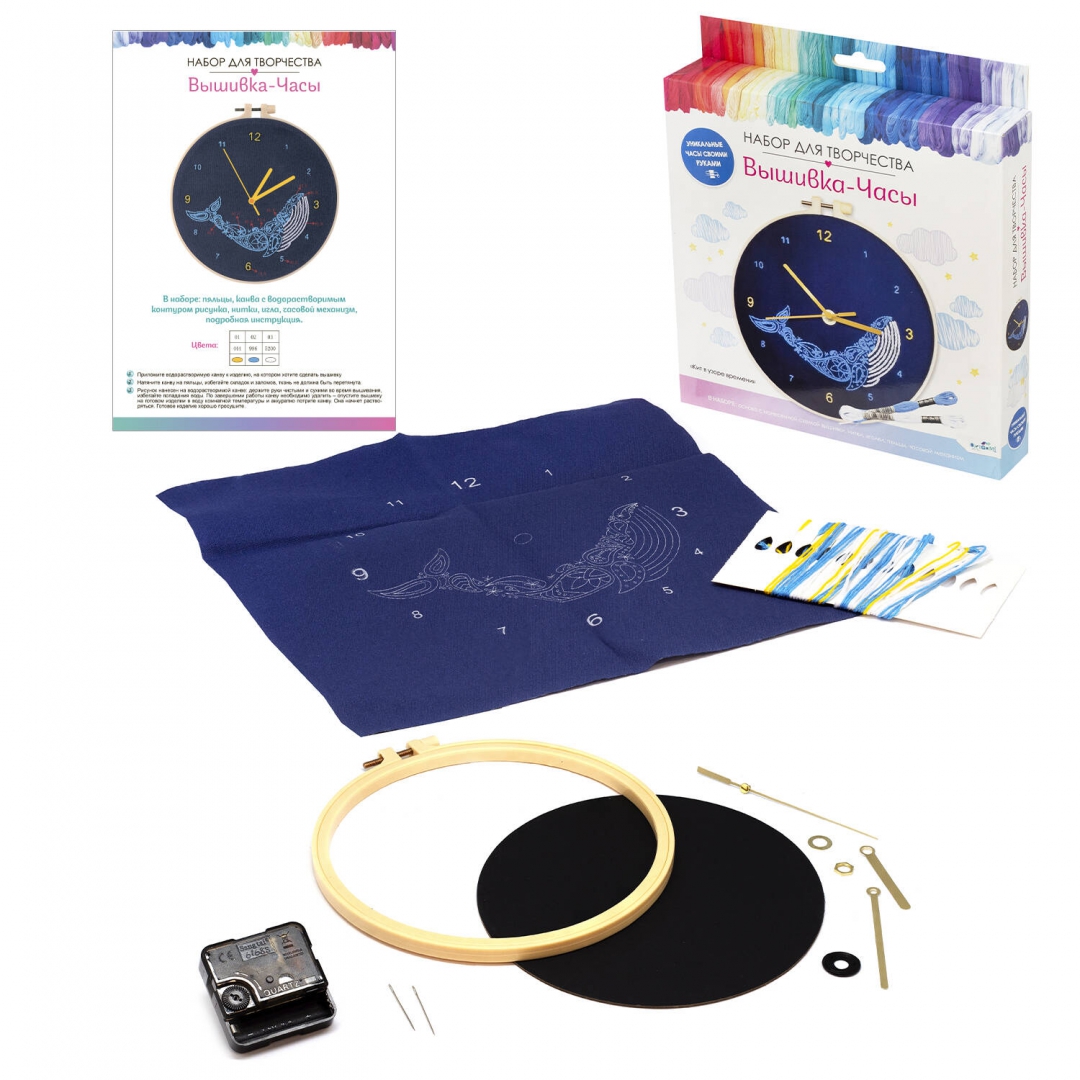 В НАБОРЕ: основа с нанесенной схемой вышивки, нитки, иголки, пяльцы, часовой механизм.