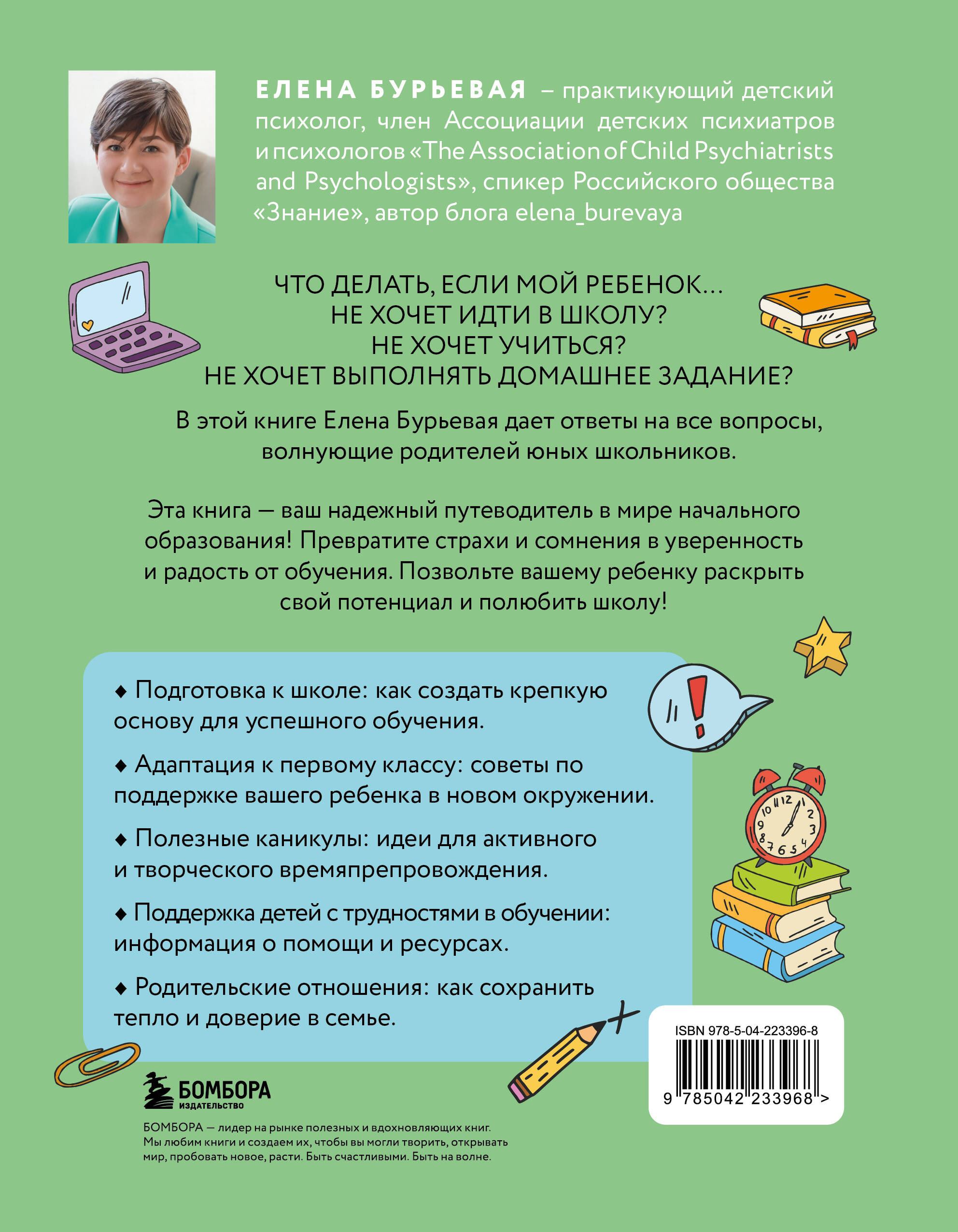 Елена Бурьевая — практикующий детский психолог, член Ассоциации детских психиатров и психологов «The Association of Child Psychiatrists and Psychologists», спикер Российского общества «Знание», автор книг «Недетские вопросы», «БЕЗопасность ребенка» и «Детская дружба», автор блога elena_burevaya.